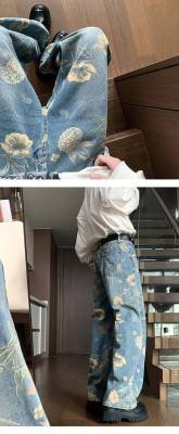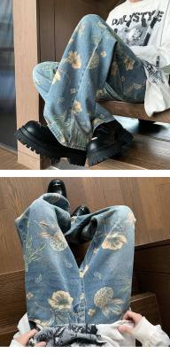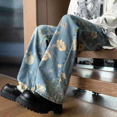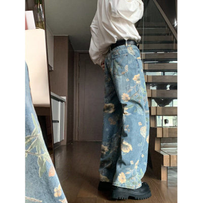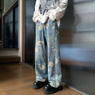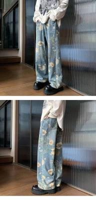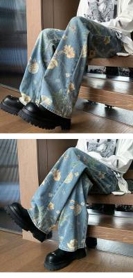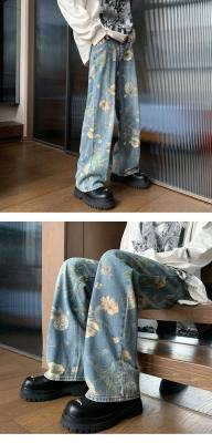 American retro distressed jeans men's summer design straight wide leg trendy brand handsome pants