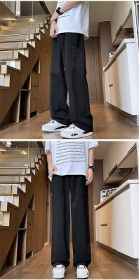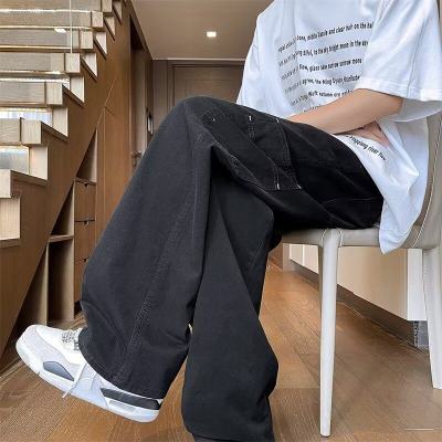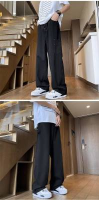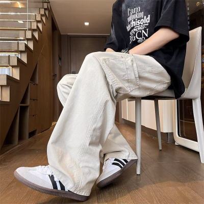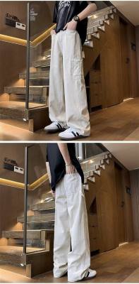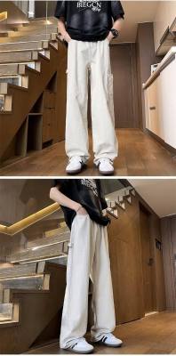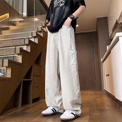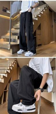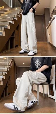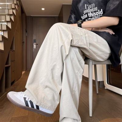 Japanese casual pure cotton extra thick slant overalls men's summer loose straight pocket style pants
