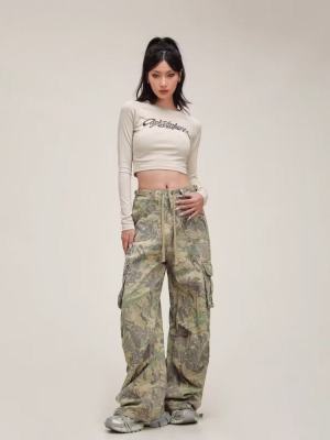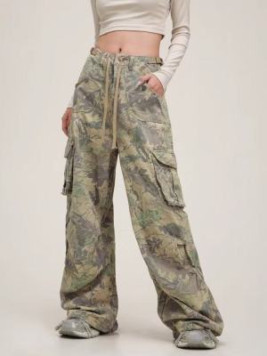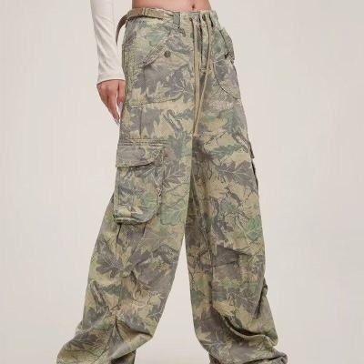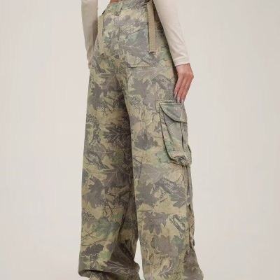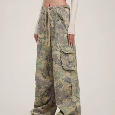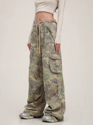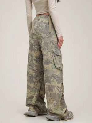 Overalls European and American retro camouflage multi-pocket loose hip-hop wide-leg floor-length trousers