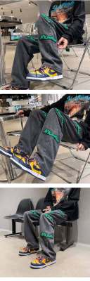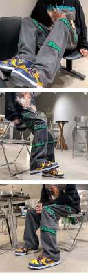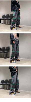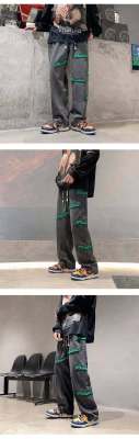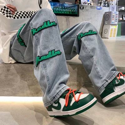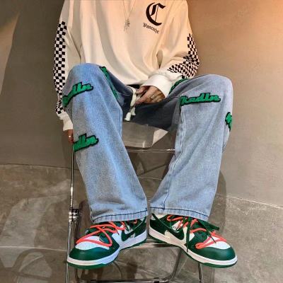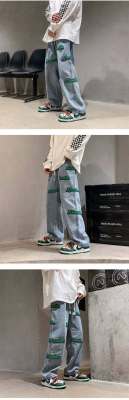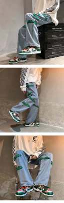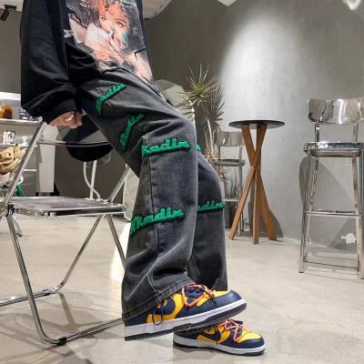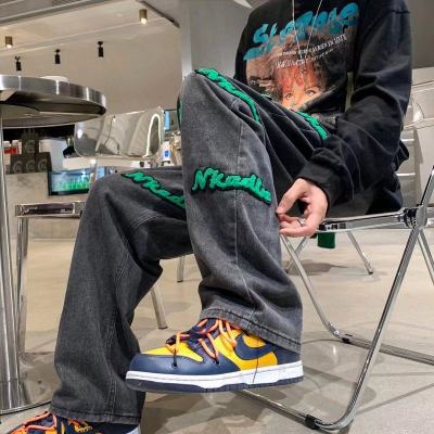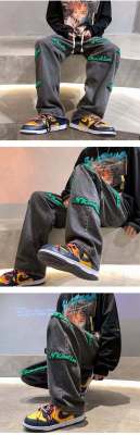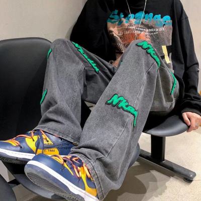 Flocked jeans men's spring and autumn American high street vibe style straight-leg loose trendy brand wide-leg pants
