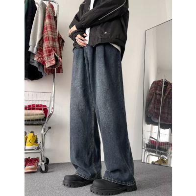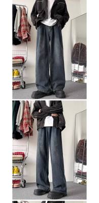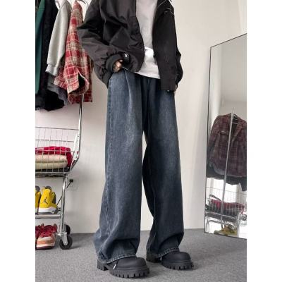 Retro jeans men's trendy wide-leg pants loose straight pants American high street versatile casual pants