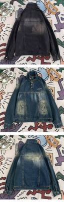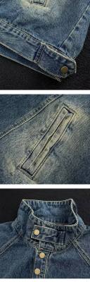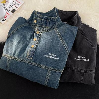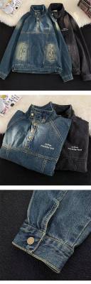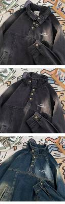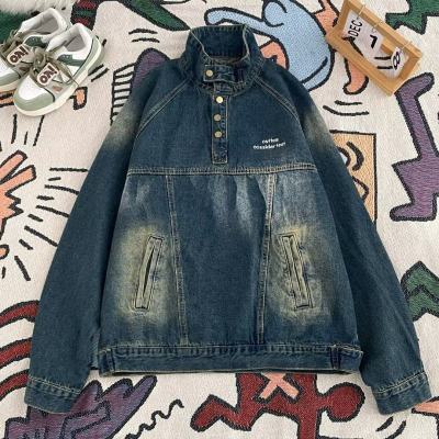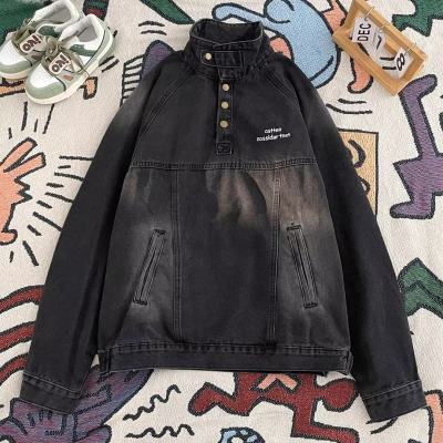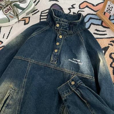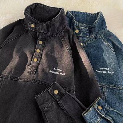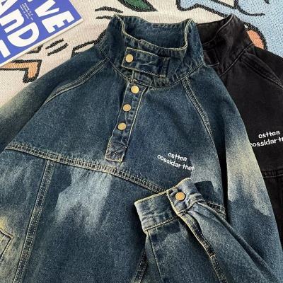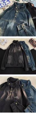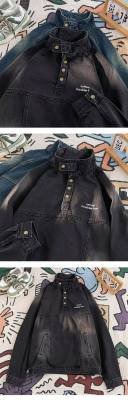American retro street stand collar denim sweatshirt for men spring and autumn new casual pullover jacket