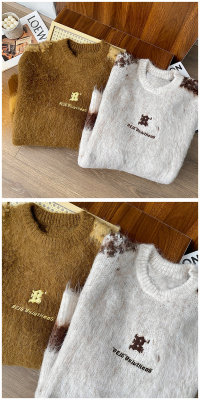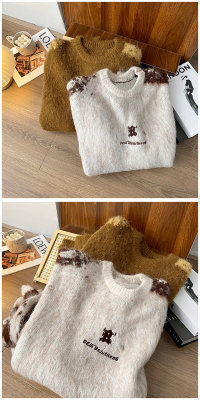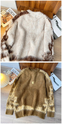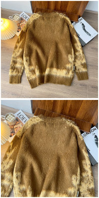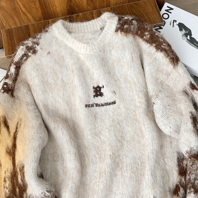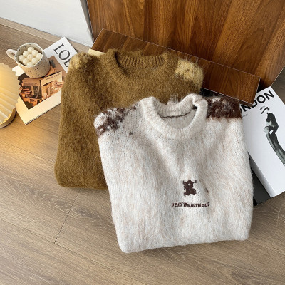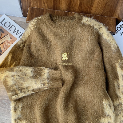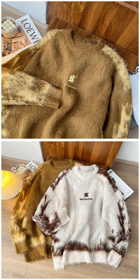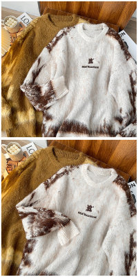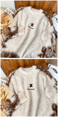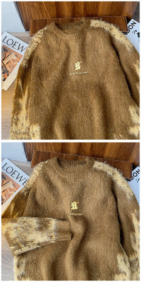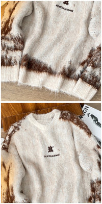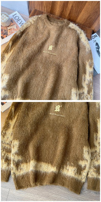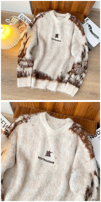 American trendy brand lazy retro contrast color loose casual round neck brushed sweater