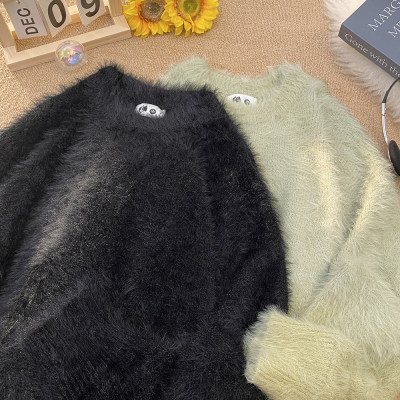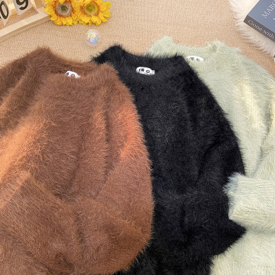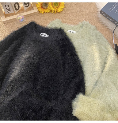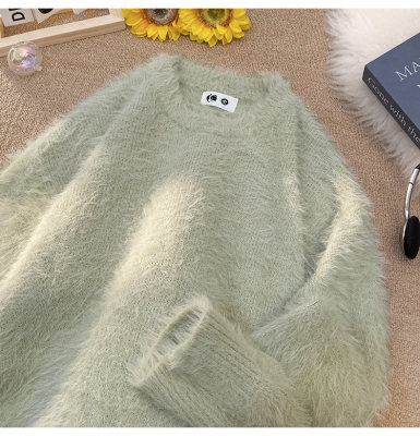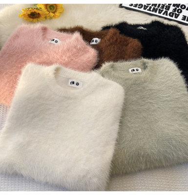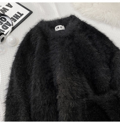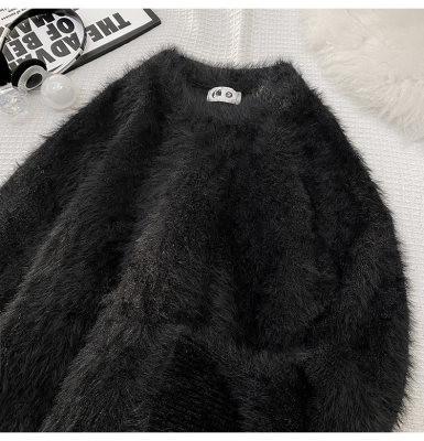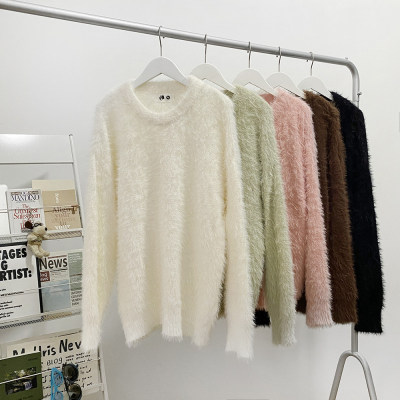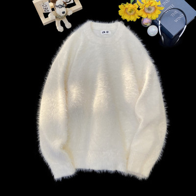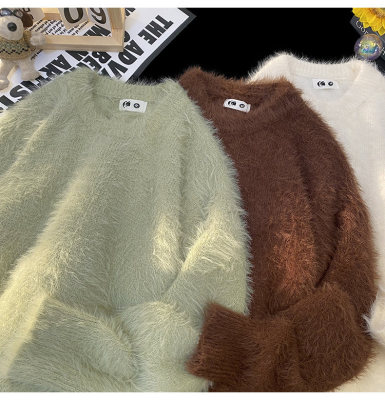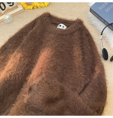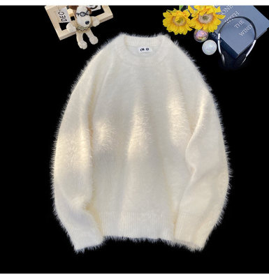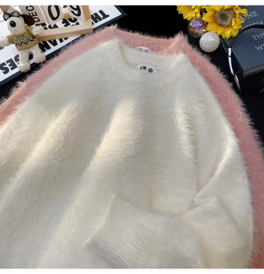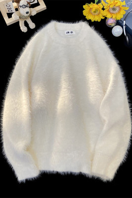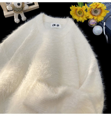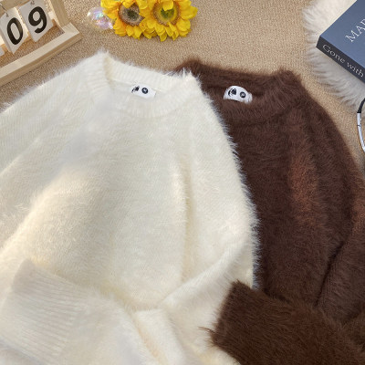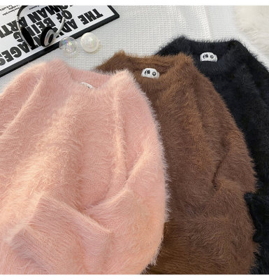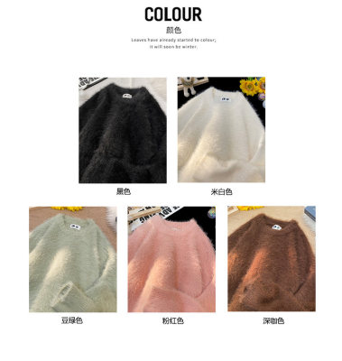 Blanket Hong Kong style autumn and winter mink fashion loose casual solid color crew neck sweater