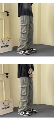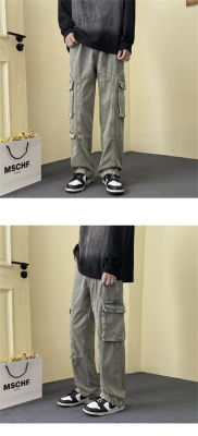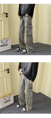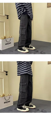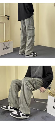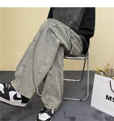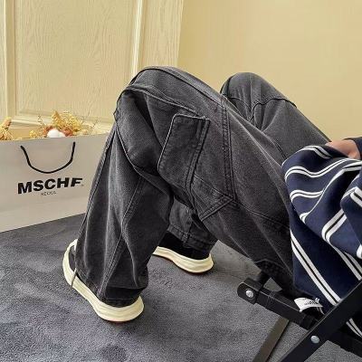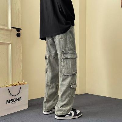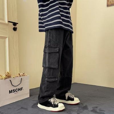 Japanese retro high street American casual bf loose trousers spring and autumn straight work jeans for men