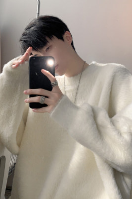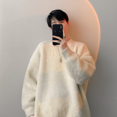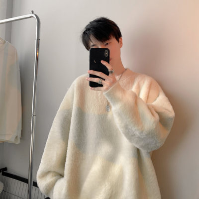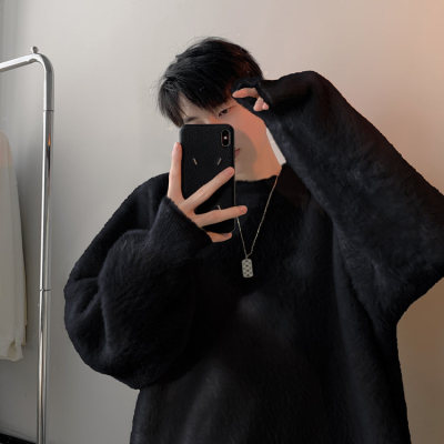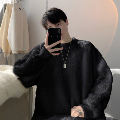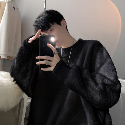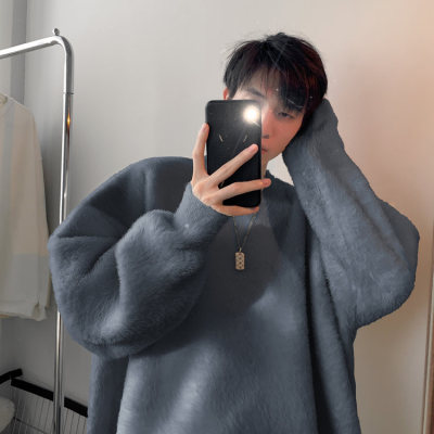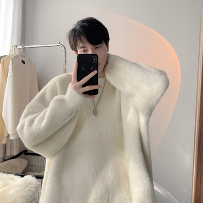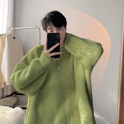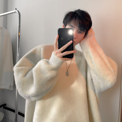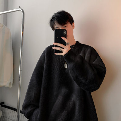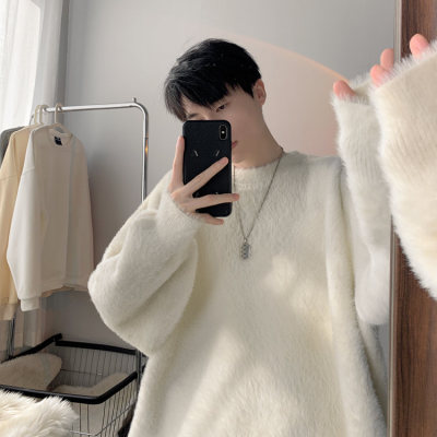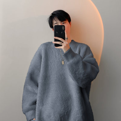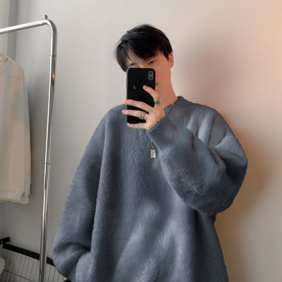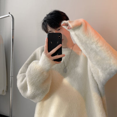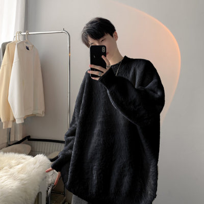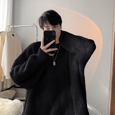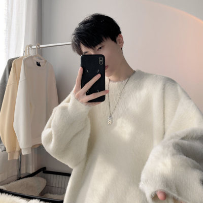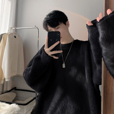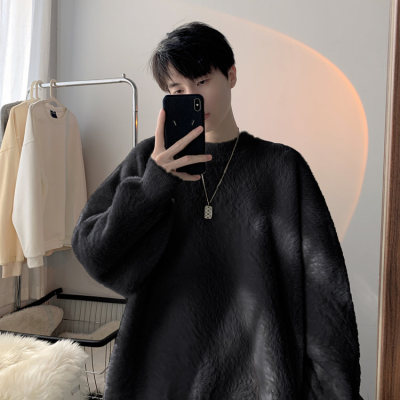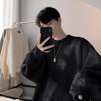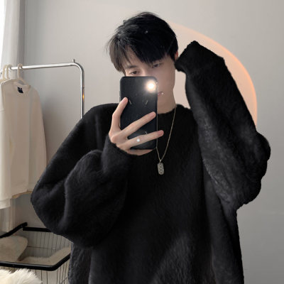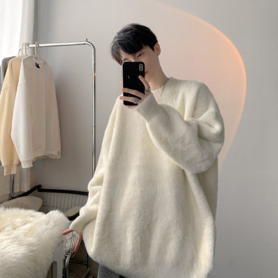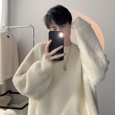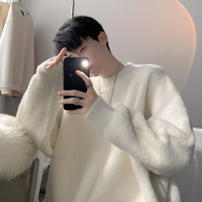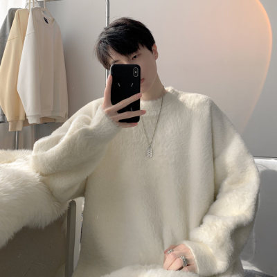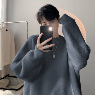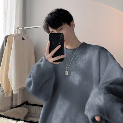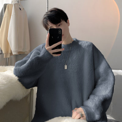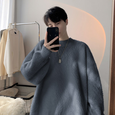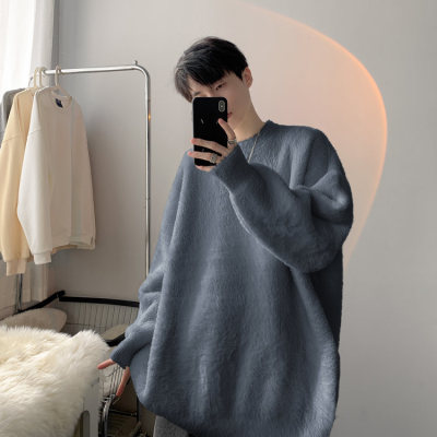 Autumn new style Hong Kong style imitation mink lazy style pullover round neck sweater for men