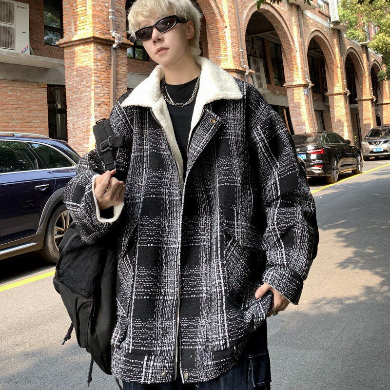 Lamb wool cotton-padded jacket for men, new winter casual jacket, trendy brand cotton-padded jacket