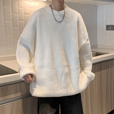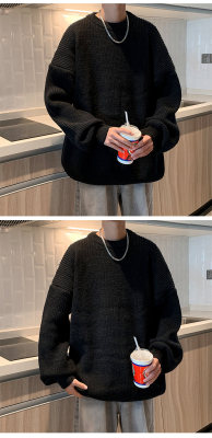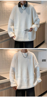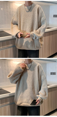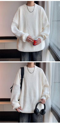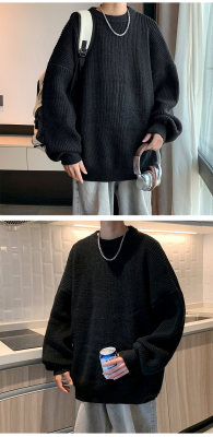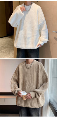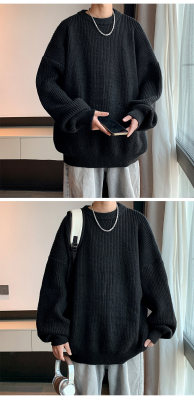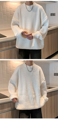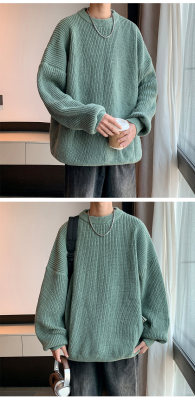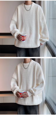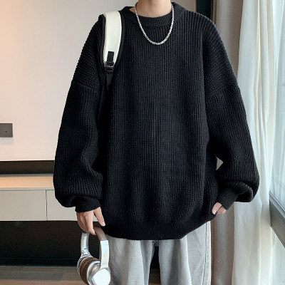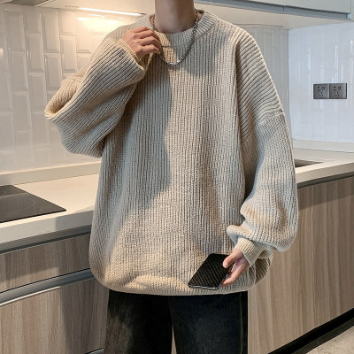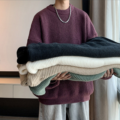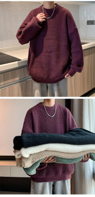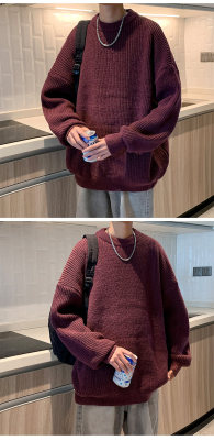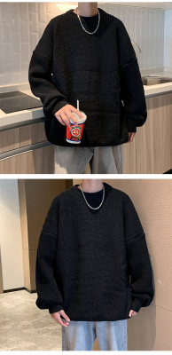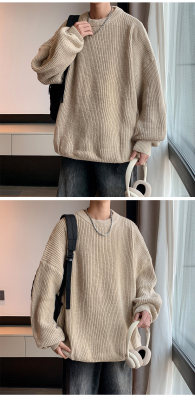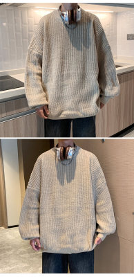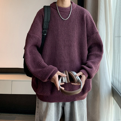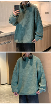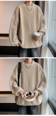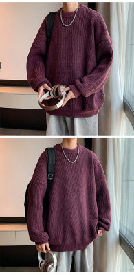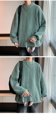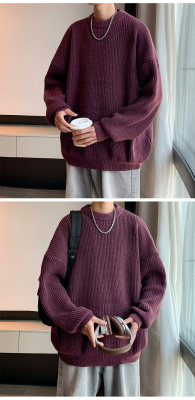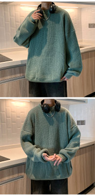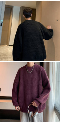 Autumn color block crew neck sweater men's American retro fashion brand loose winter sweater