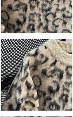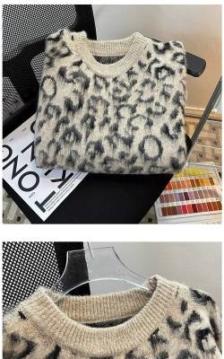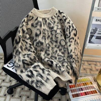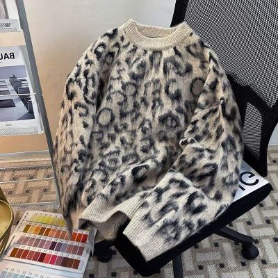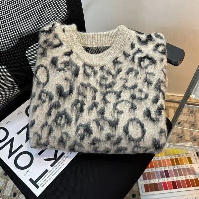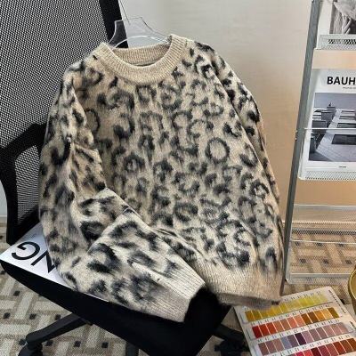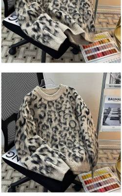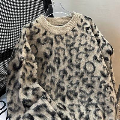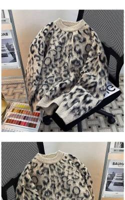 Leopard print sweaters for men and women, Korean style trendy loose, versatile, lazy and warm 2024 winter sweaters
