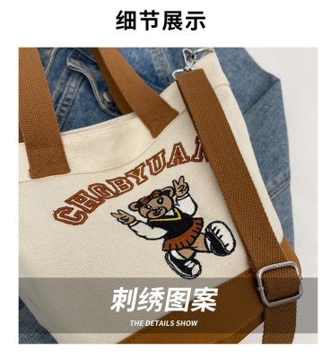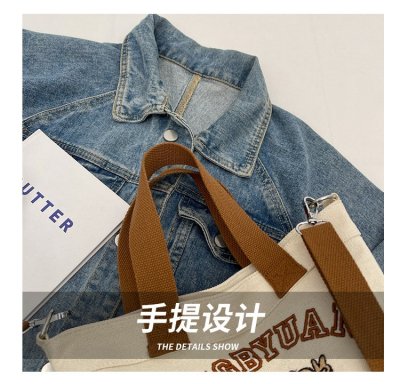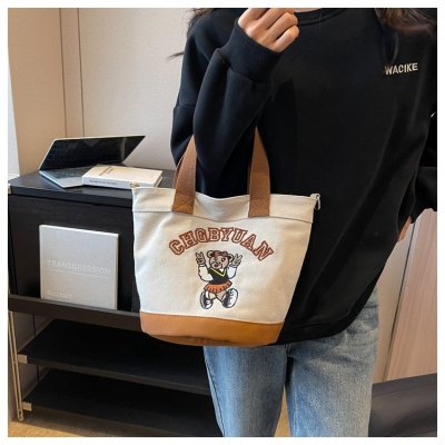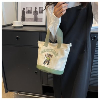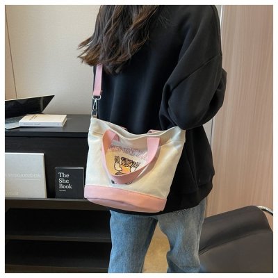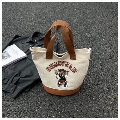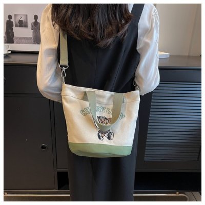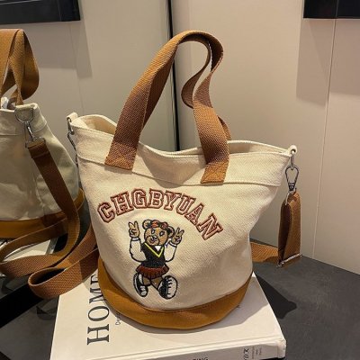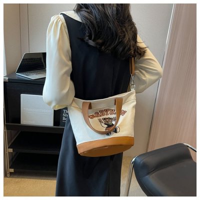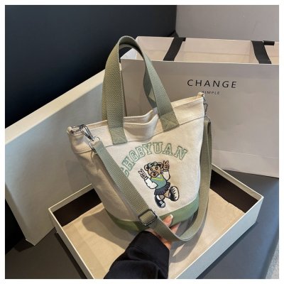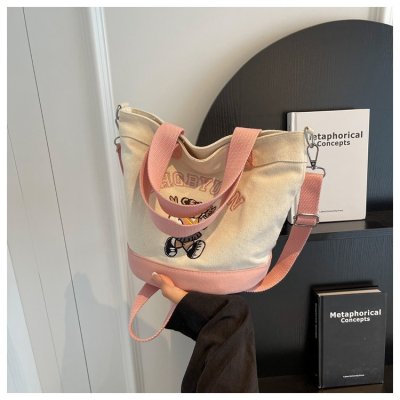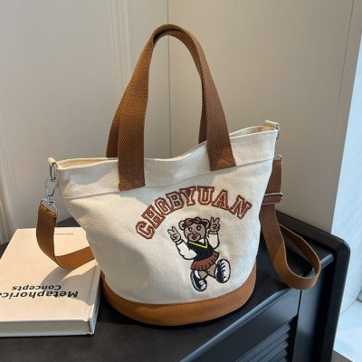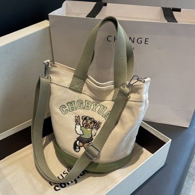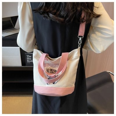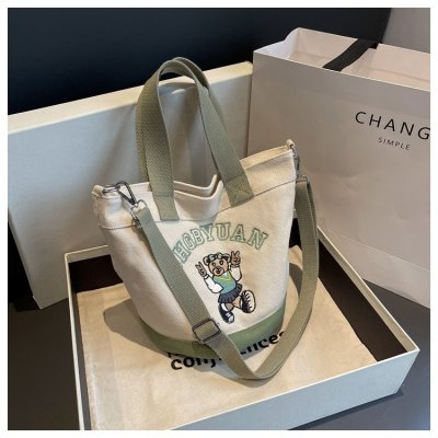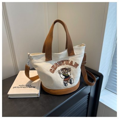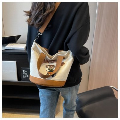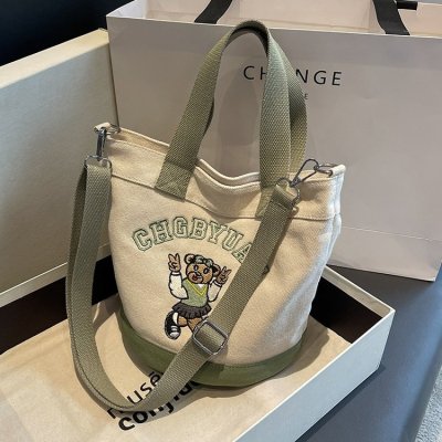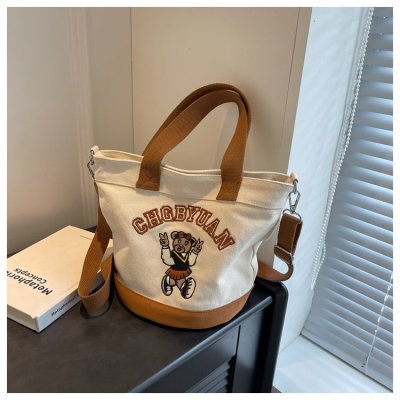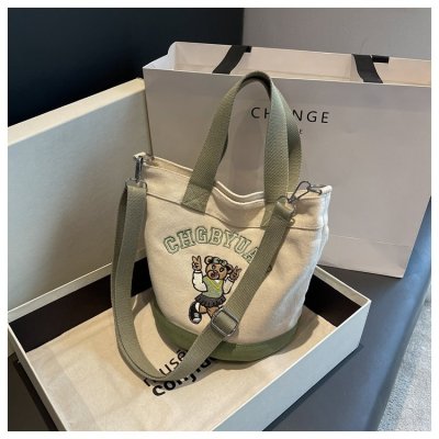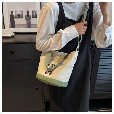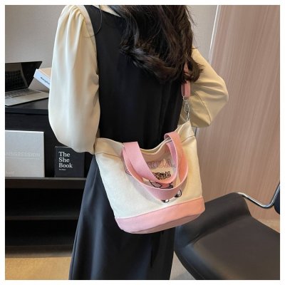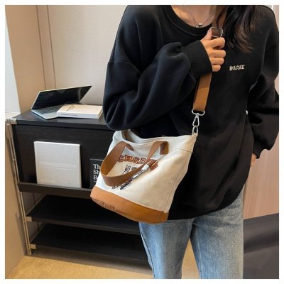 Japanese and Korean cross-border popular portable bucket bag women's new niche simple fashion canvas shoulder crossbody bag