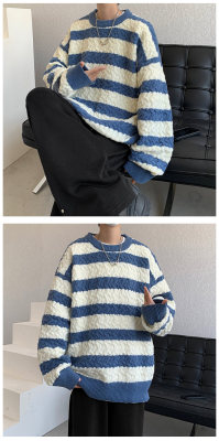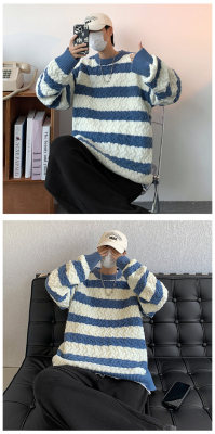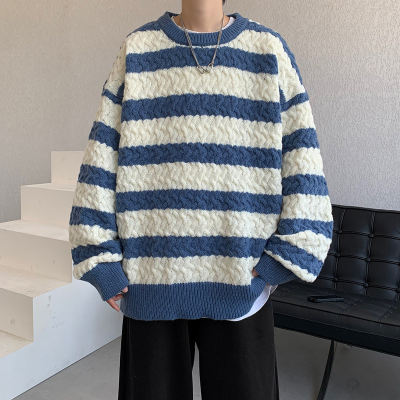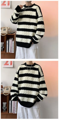 Striped sweater men's Korean style trendy student autumn and winter new ins loose sweater jacket