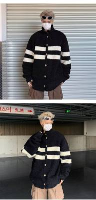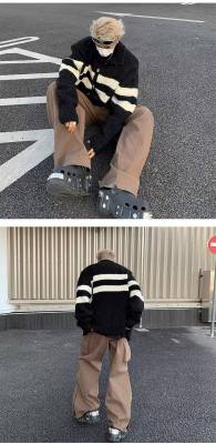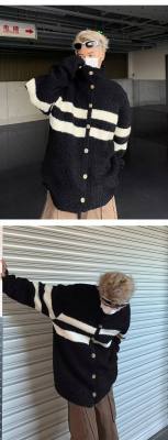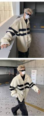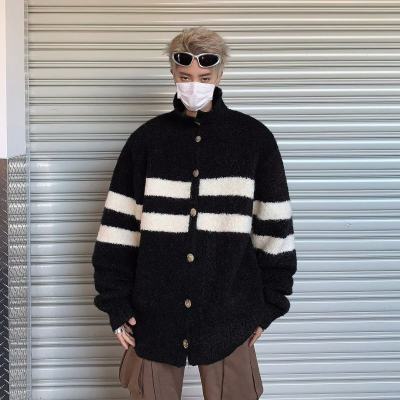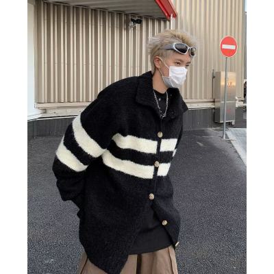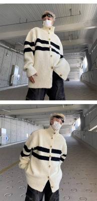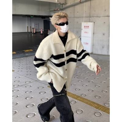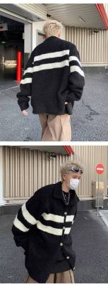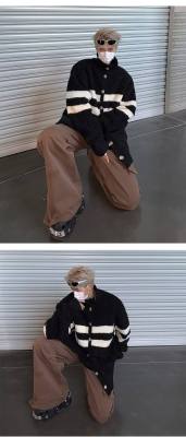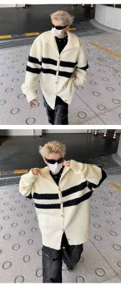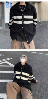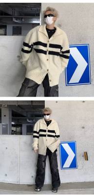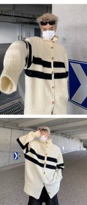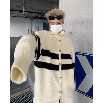 Knitted cardigan men's Korean style trendy striped color matching handsome 2023 winter new isn sweater