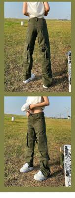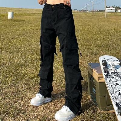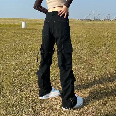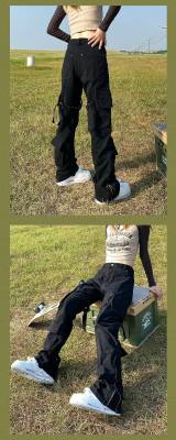 Men and women's new artistic spring zipper dark high-waisted versatile trendy simple washed jeans