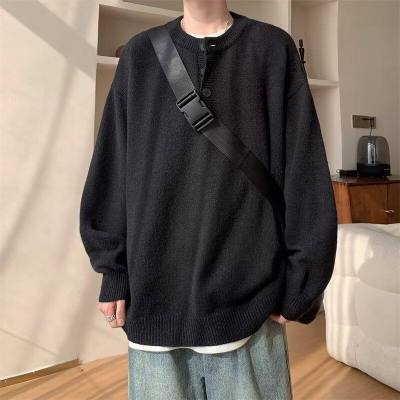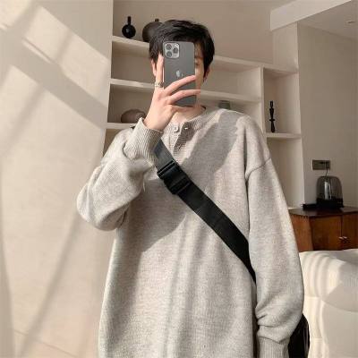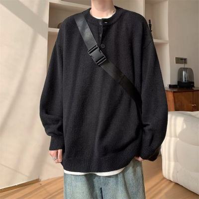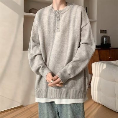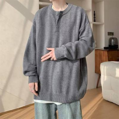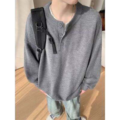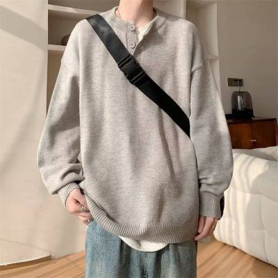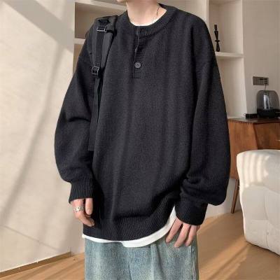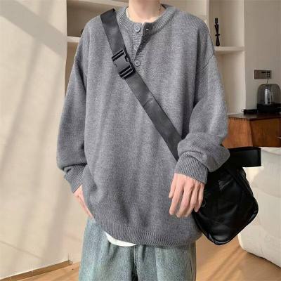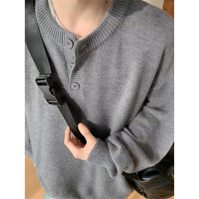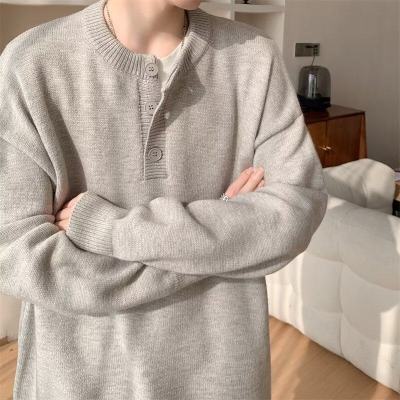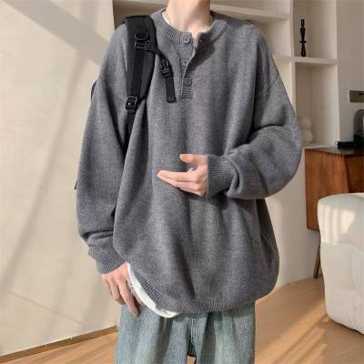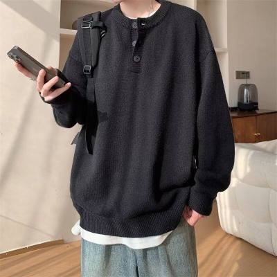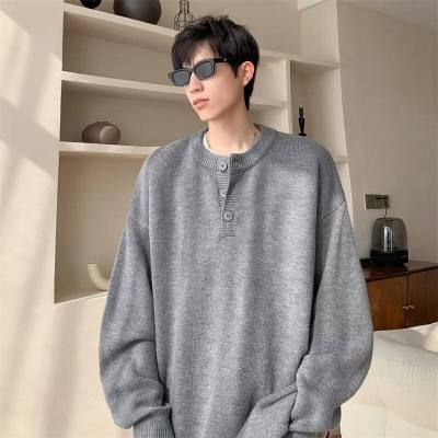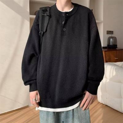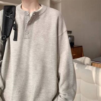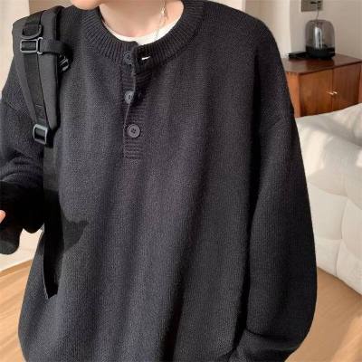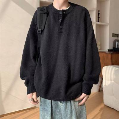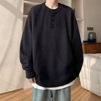 High quality henley collar button sweater men's winter loose and versatile knitted top