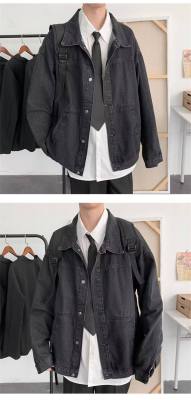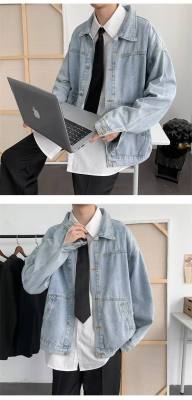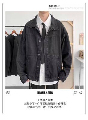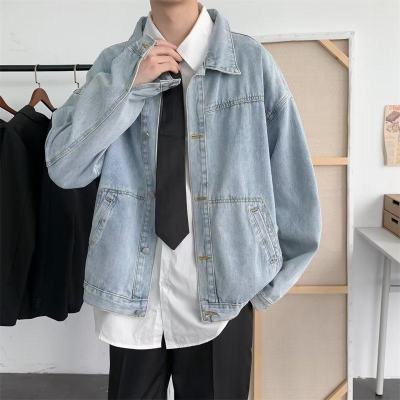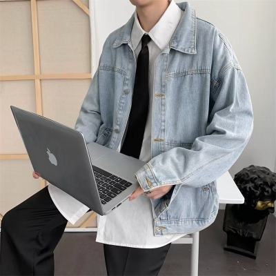 Denim jacket men's Korean style trendy handsome clothes street work jacket spring and autumn Harajuku style outerwear