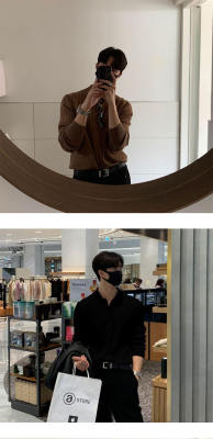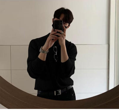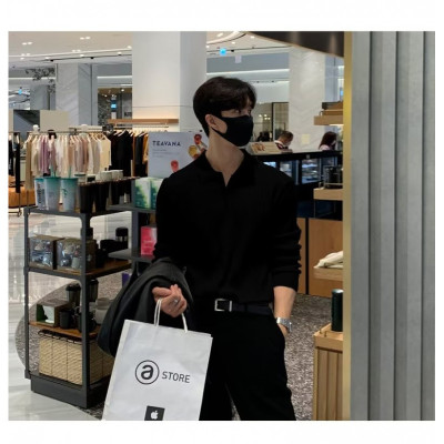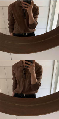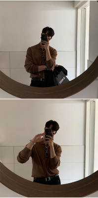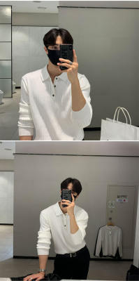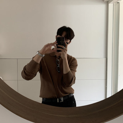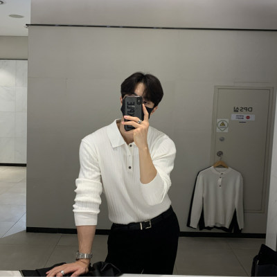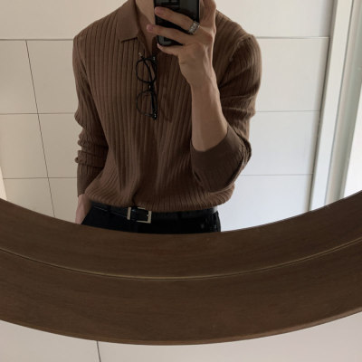 Autumn and winter Korean style polo shirt lapel sweater men's long-sleeved Hong Kong style solid color inner knitted bottoming shirt top clothes