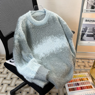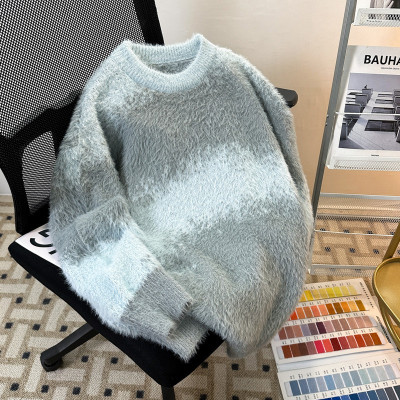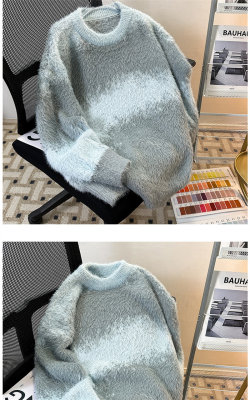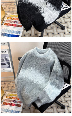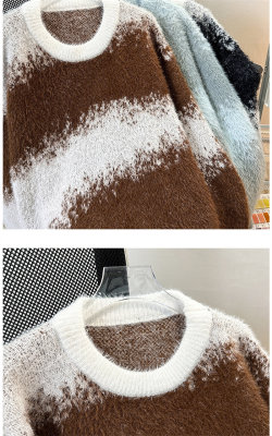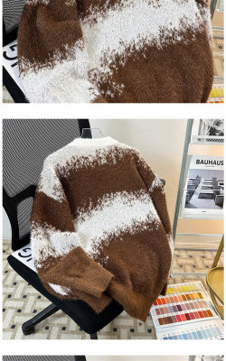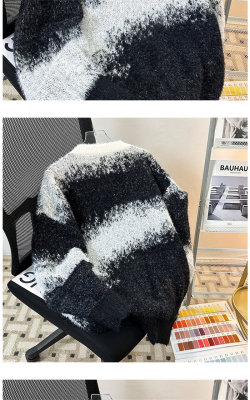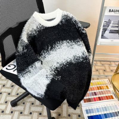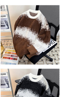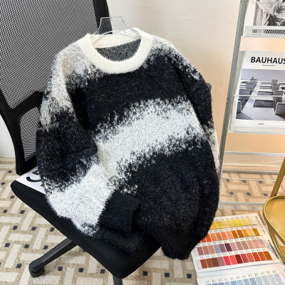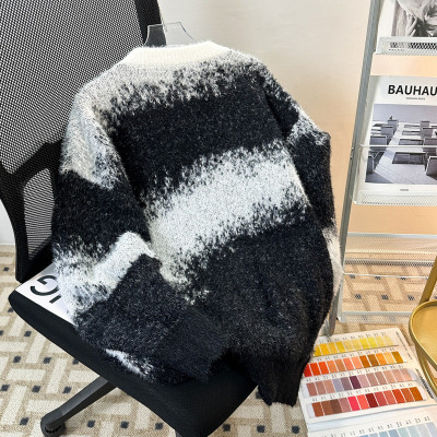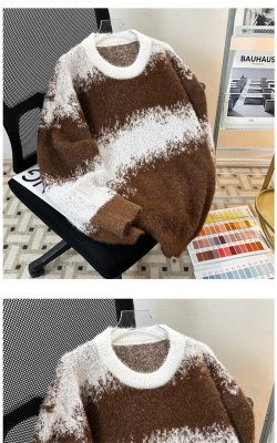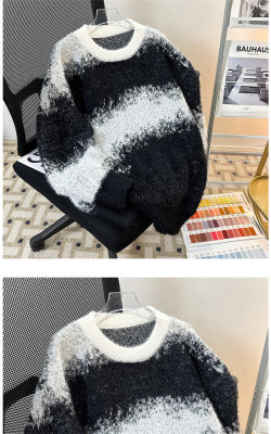 New heavyweight tie-dye striped round neck long-sleeved sweater for autumn and winter