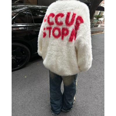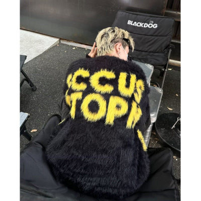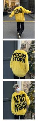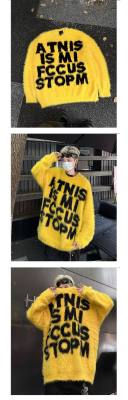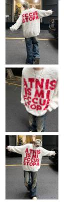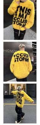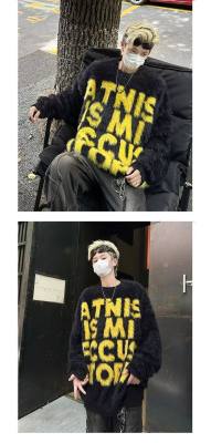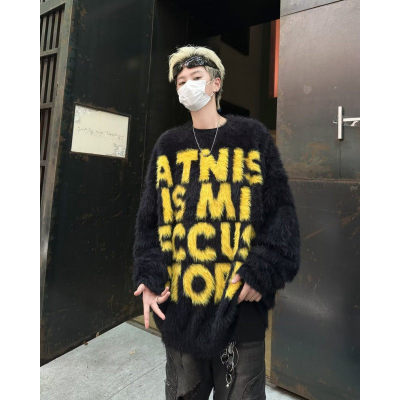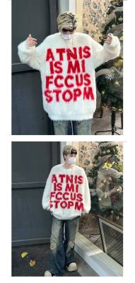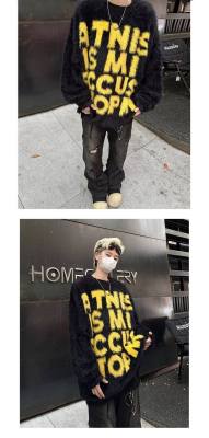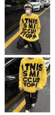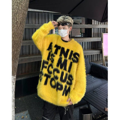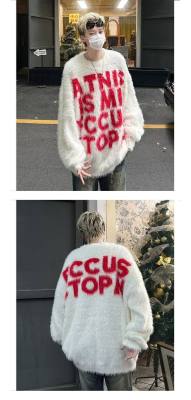 Retro letter jacquard mink sweater men's autumn and winter new loose and versatile sweater