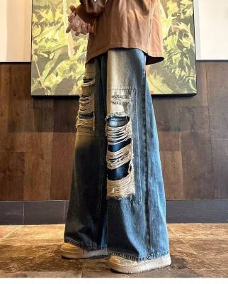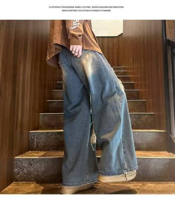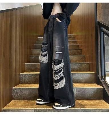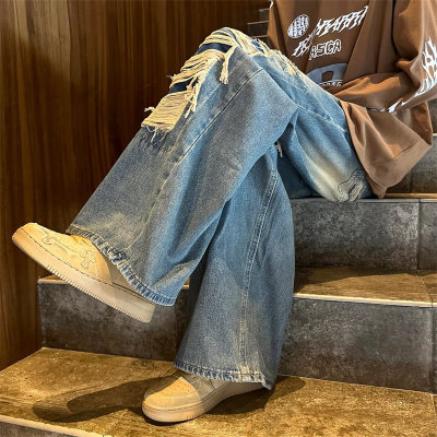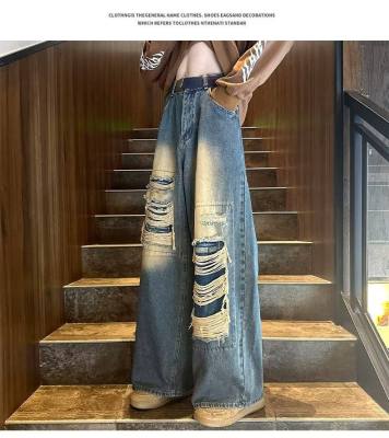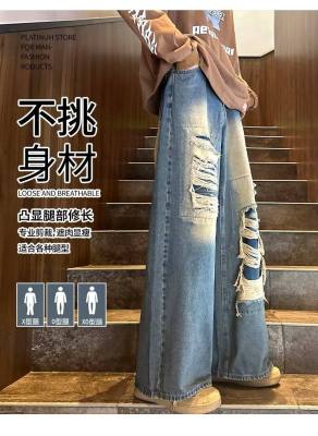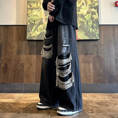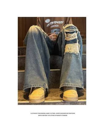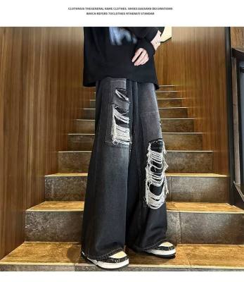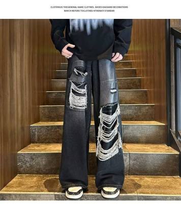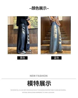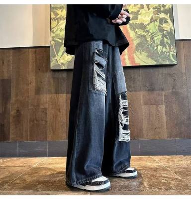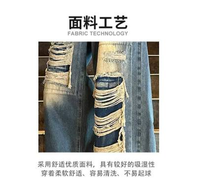 American street patched hole design niche jeans men's ins trend loose straight pants