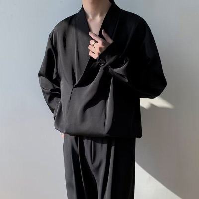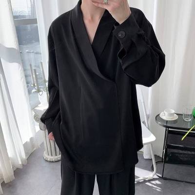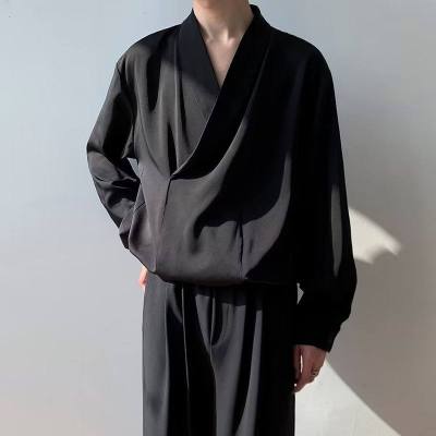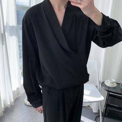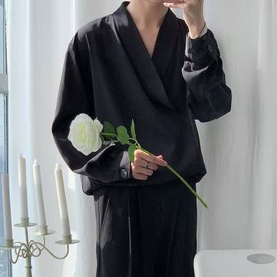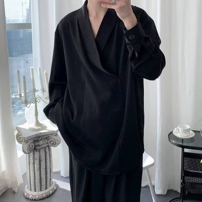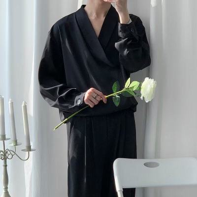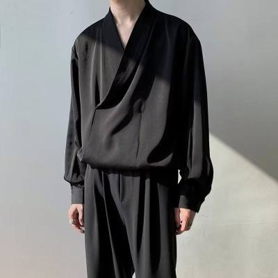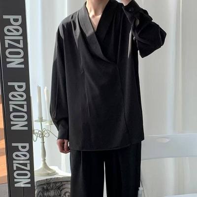 New Chinese style Tang suit shirt men's long-sleeved Chinese style cross-collar light mature yuppie shirt ins trend casual jacket