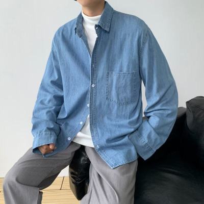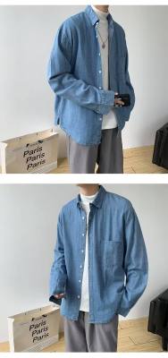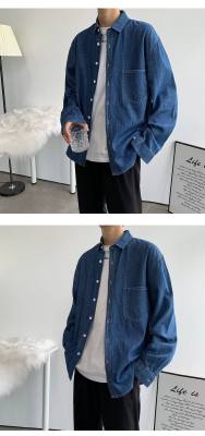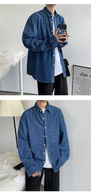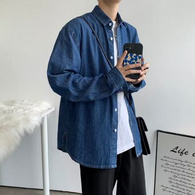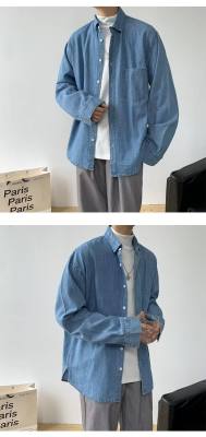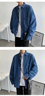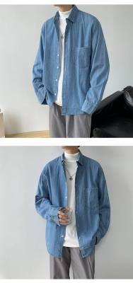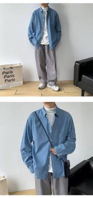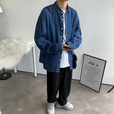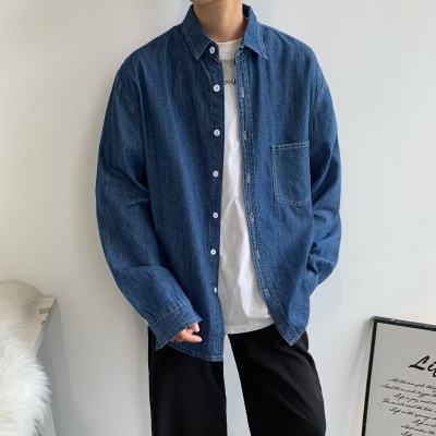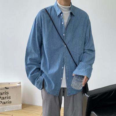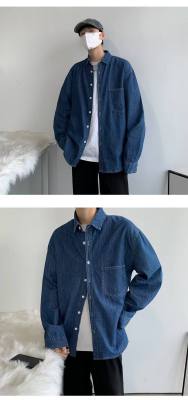 Japanese retro distressed long-sleeved denim shirts for men and women, trendy brand loose bf style casual couple thin coats