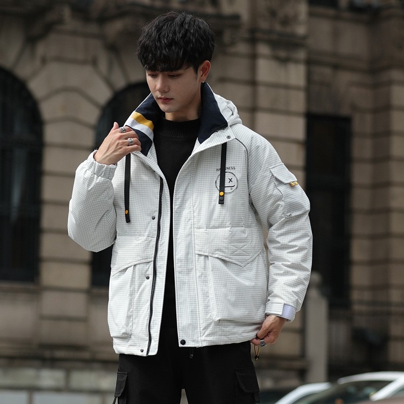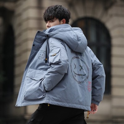 Quality Inspection Down Jacket Smiling Face Graffiti Youth Trendy Thickened Warm and Coldproof High Fleece Men's Jacket