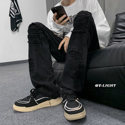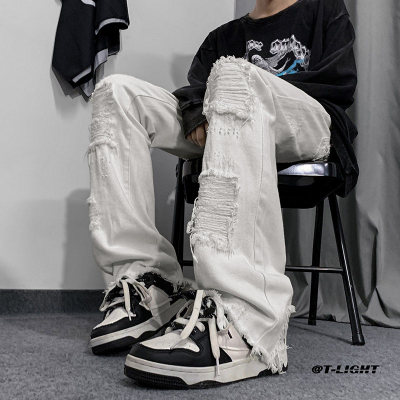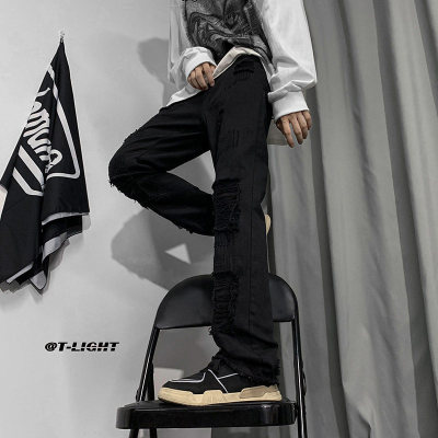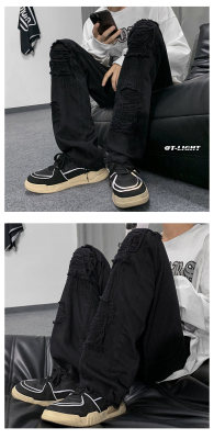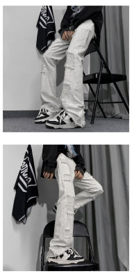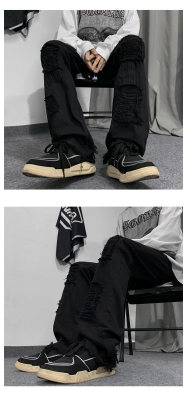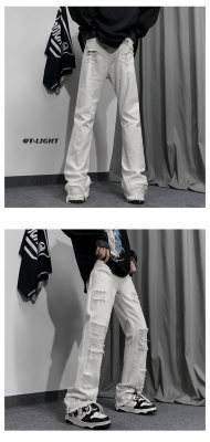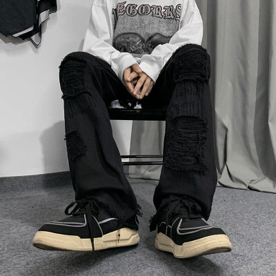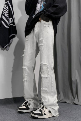 Autumn and winter American ins high street niche heavy crafts ripped jeans