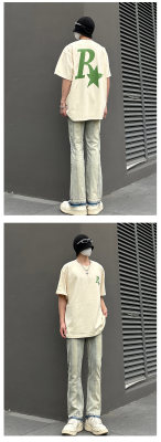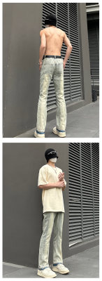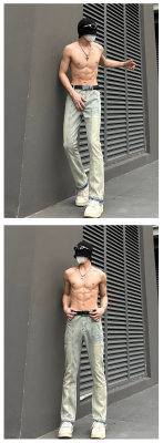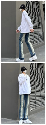 Style details: Five-pocket style with topstitching and raw edges