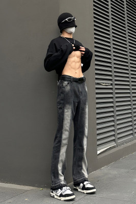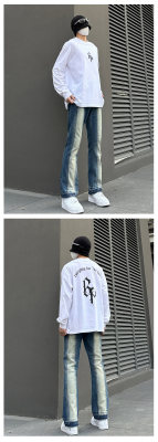 American ins high street dark niche raw edge slim fit jeans