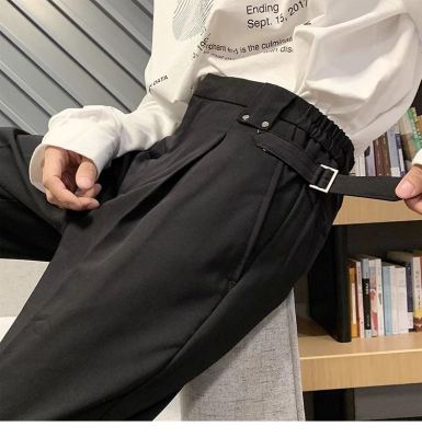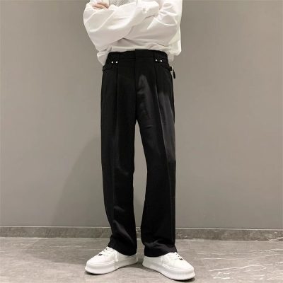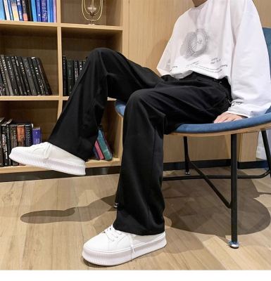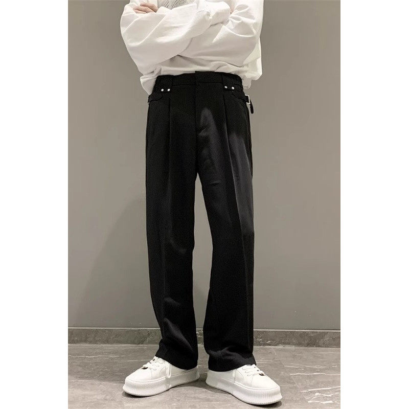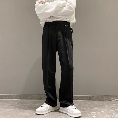 Light and mature style casual trousers for men in summer, loose straight-leg suit trousers with drapey ice silk trousers