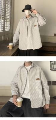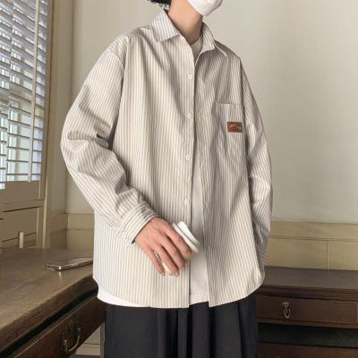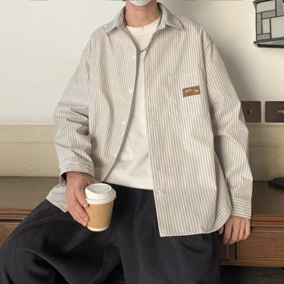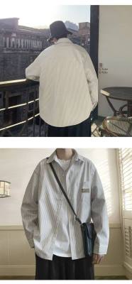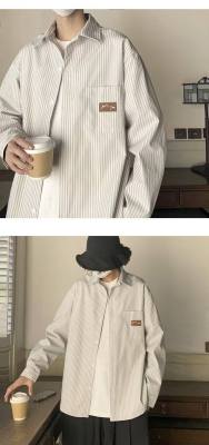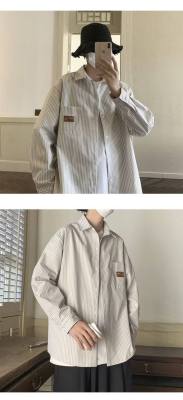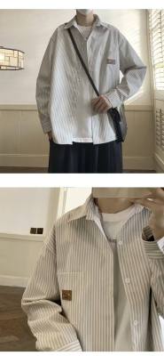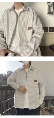Hong Kong style long-sleeved shirt, summer thin, trendy loose vertical striped shirt for men and women, couple wear
