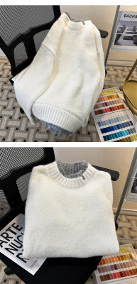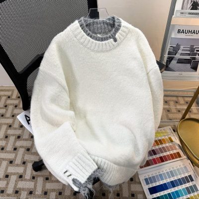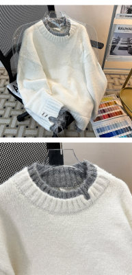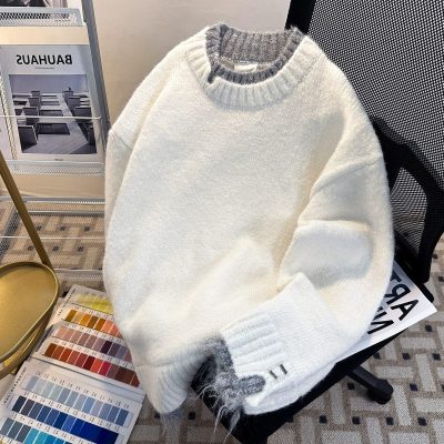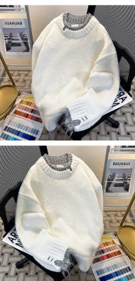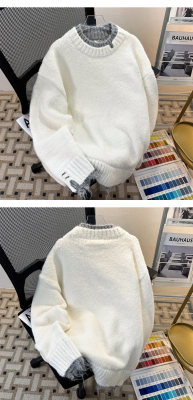 Men's white sweater jacket handsome loose lazy style fake two-piece couple sweater men's winter style