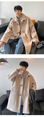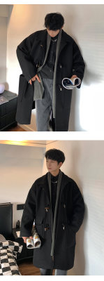 Mid-length woolen coat for men, autumn and winter Korean style trendy handsome windbreaker jacket