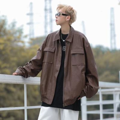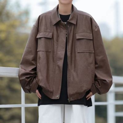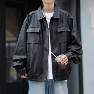 American high street leather jacket for men with pockets, personality, ruffian and handsome autumn and winter new style ins jacket