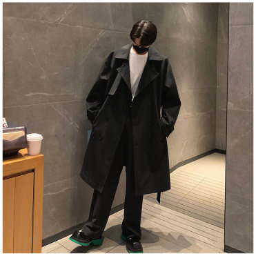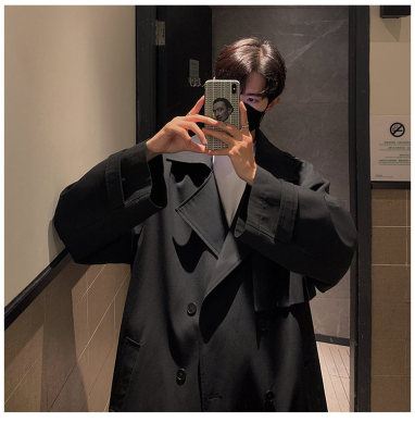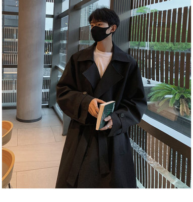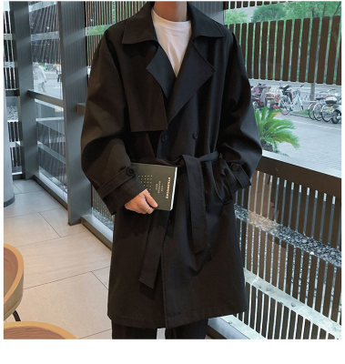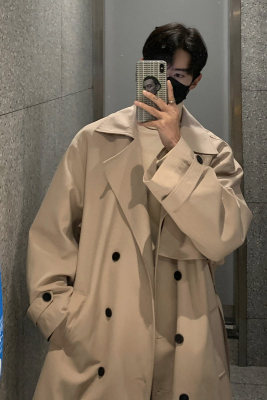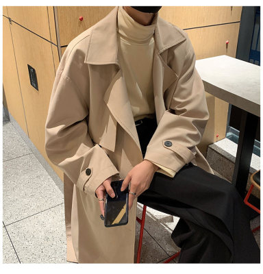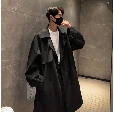 Simple, loose and versatile mid-length coat for autumn men's double-breasted casual windbreaker