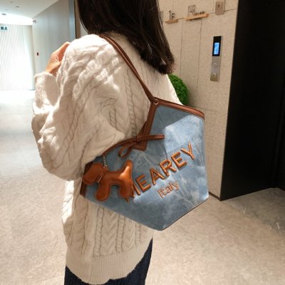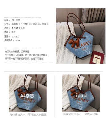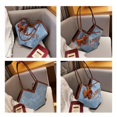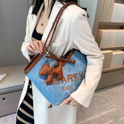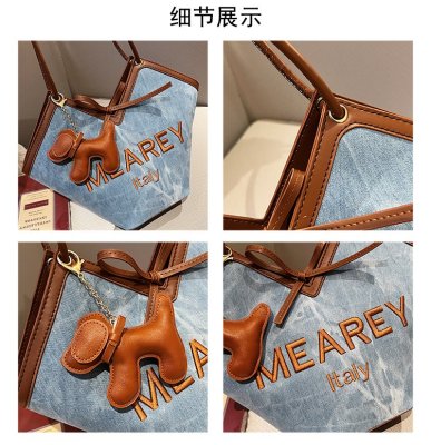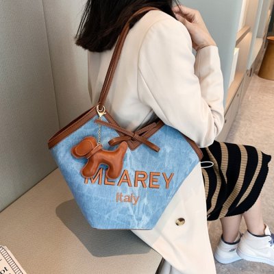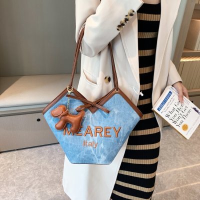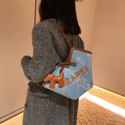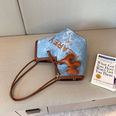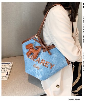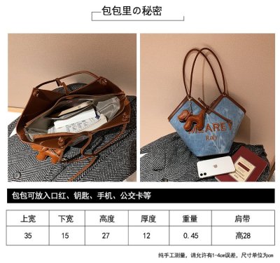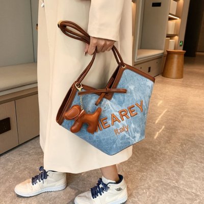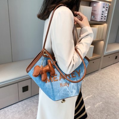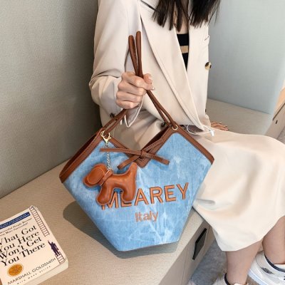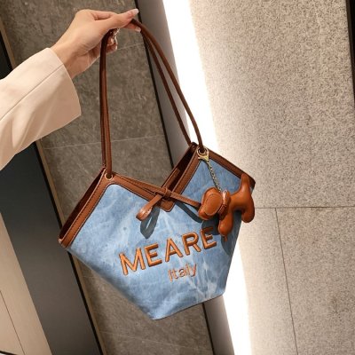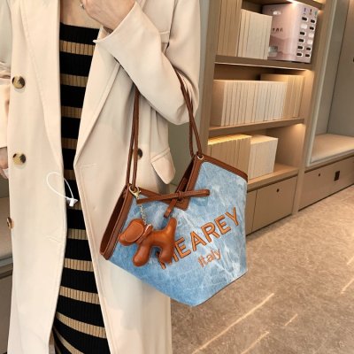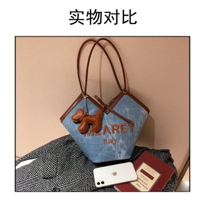 Korean style shoulder shopping bag, commuter tote bag, new style, stylish handbag for women, niche denim bucket bag trend