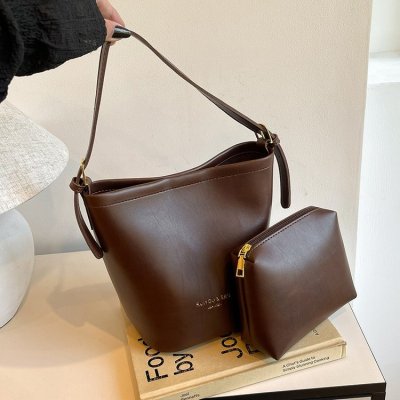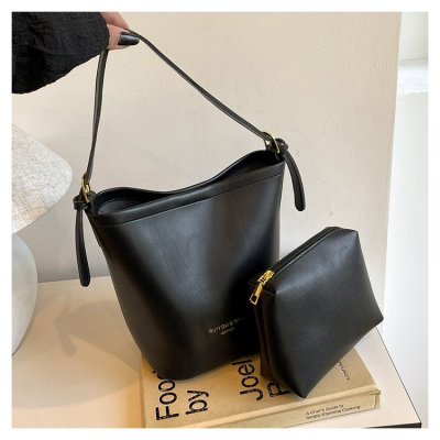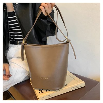 jacquemus niche design high-end shoulder bag large capacity genuine leather commuting wide shoulder strap bucket bag for women