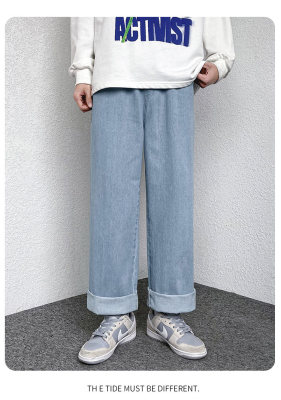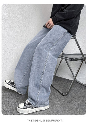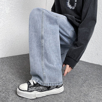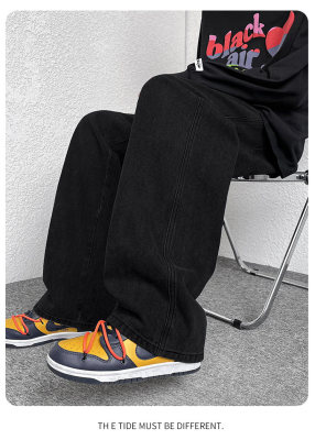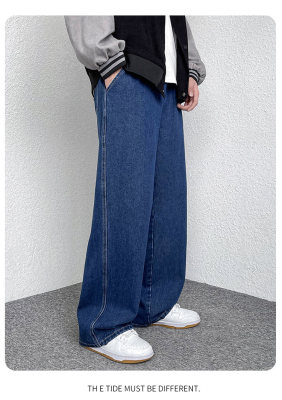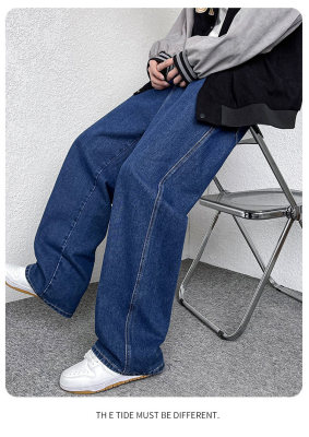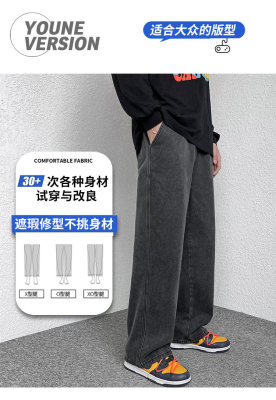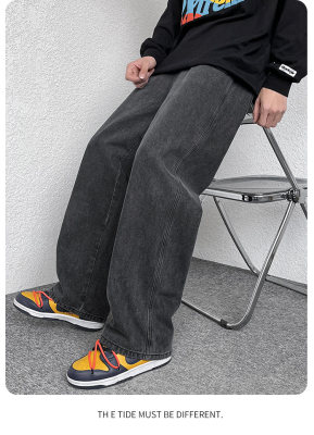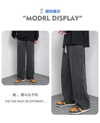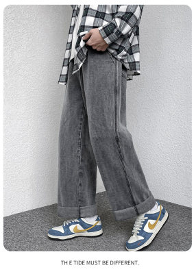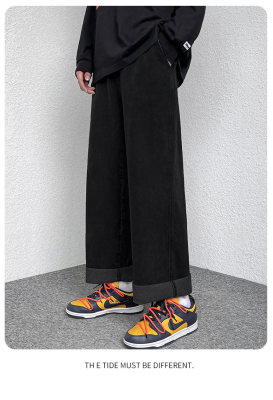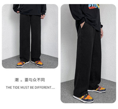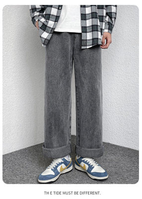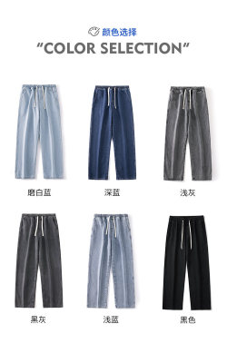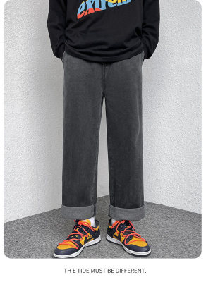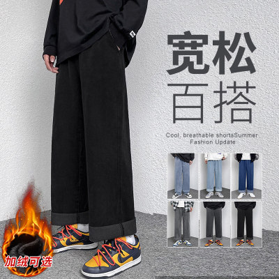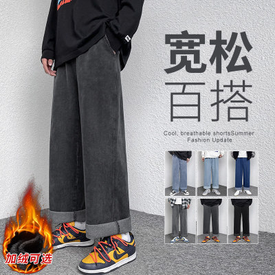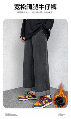 Winter velvet thickened jeans men's cotton trousers autumn trousers warm and cold-resistant loose straight trousers