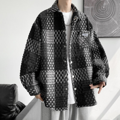 Xiaoxiang style plaid jacket men's autumn ins design Japanese retro loose versatile jacket