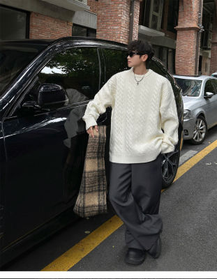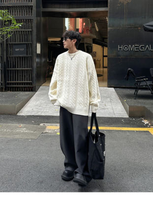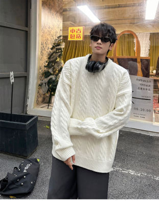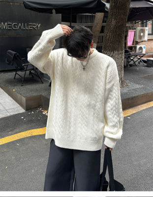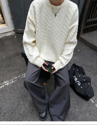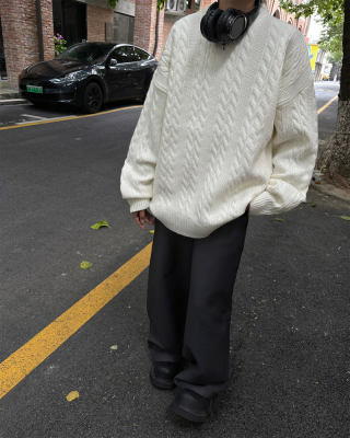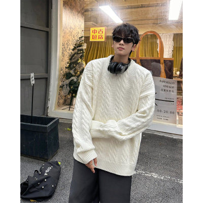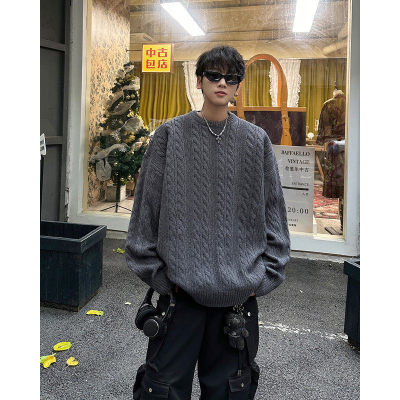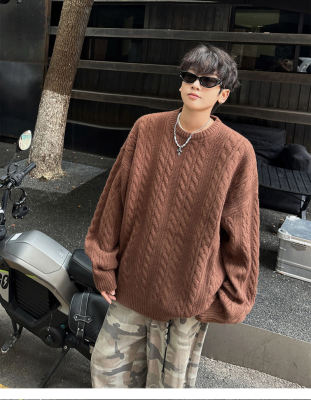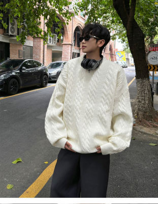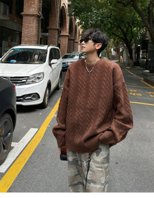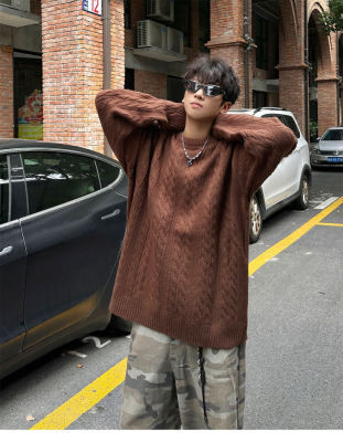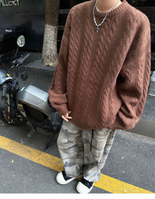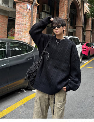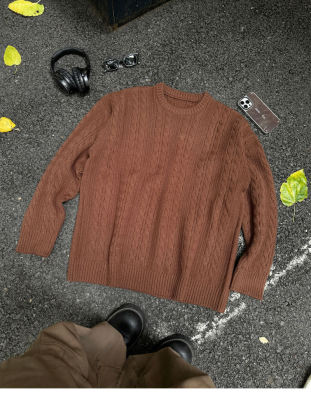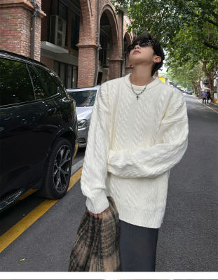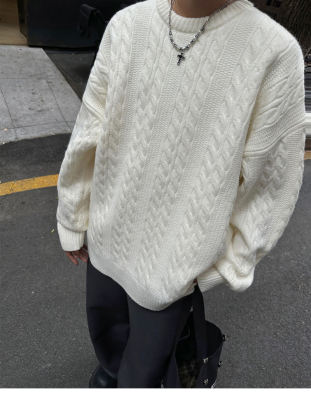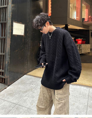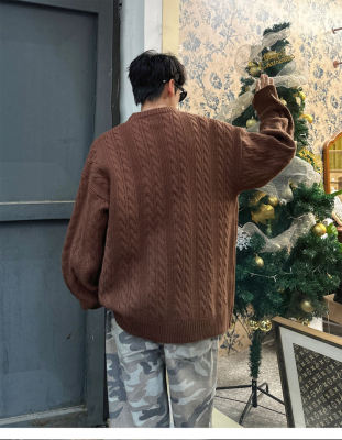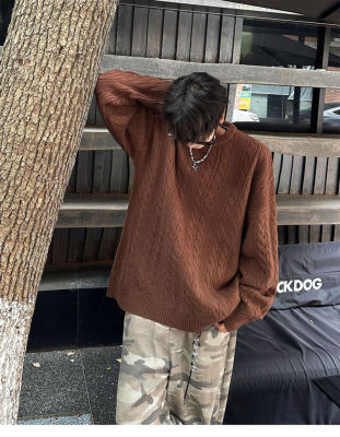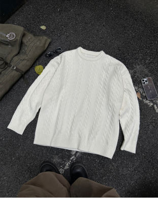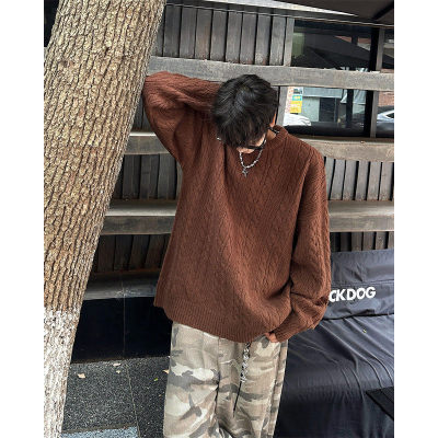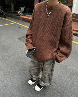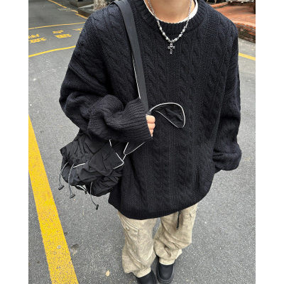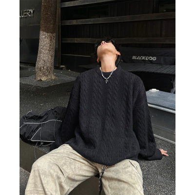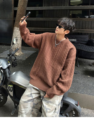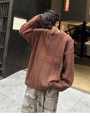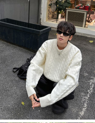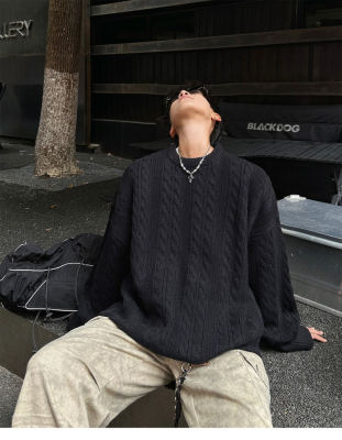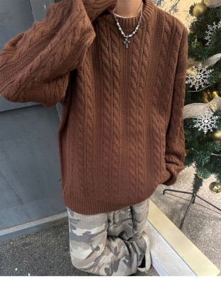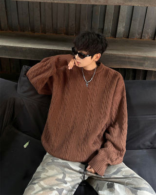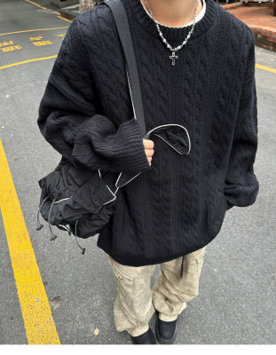 Men's solid color twist knitted sweater