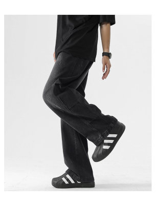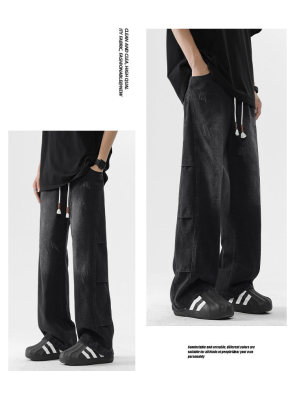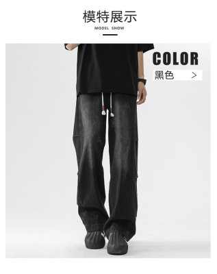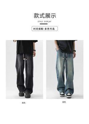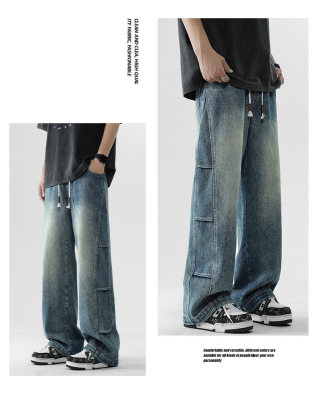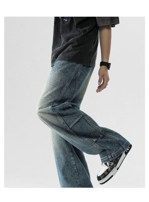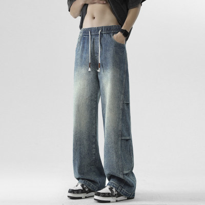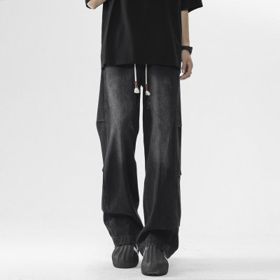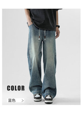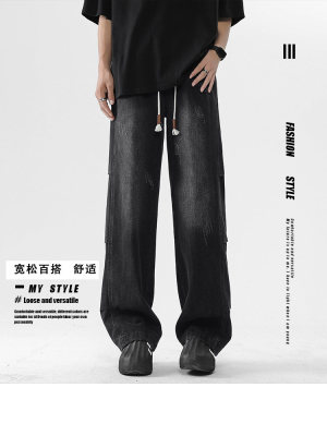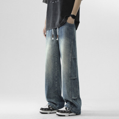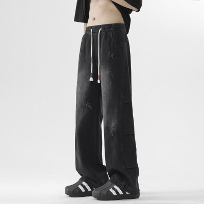 Summer retro trendy high street American style washed distressed straight jeans
