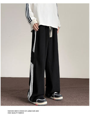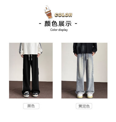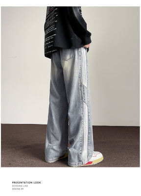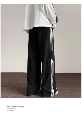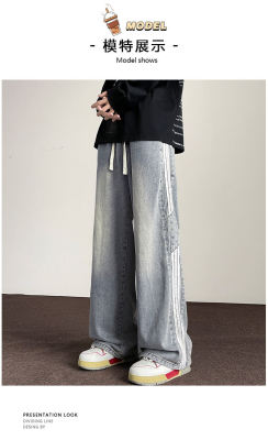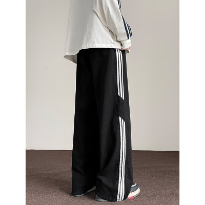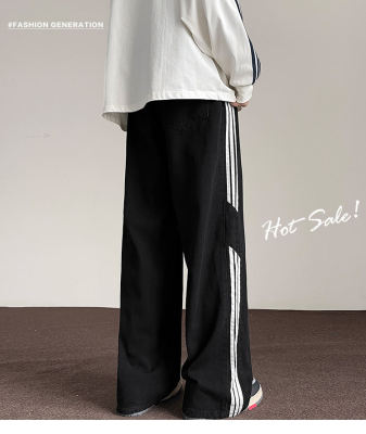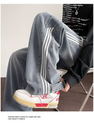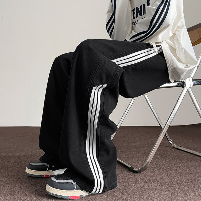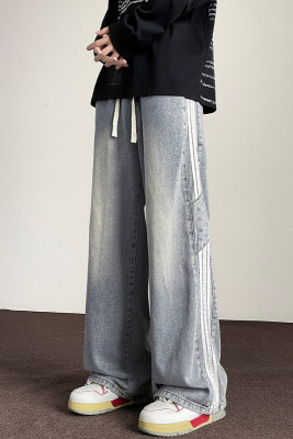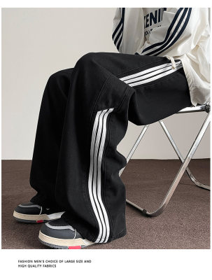 American striped autumn new straight pants men's retro street all-match jeans