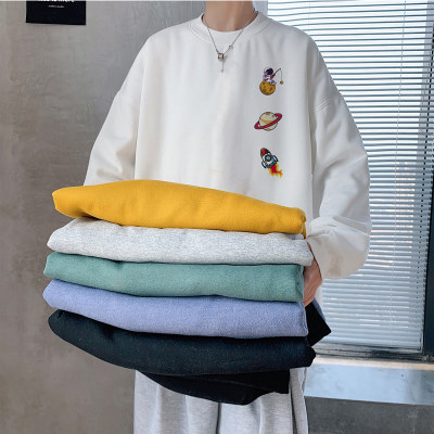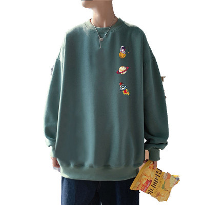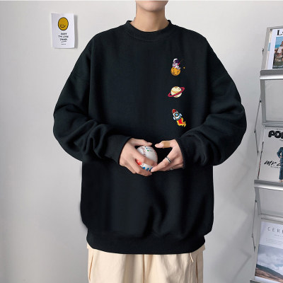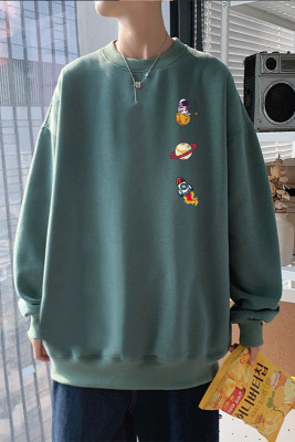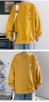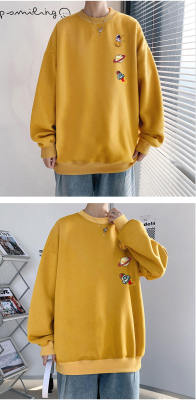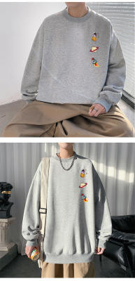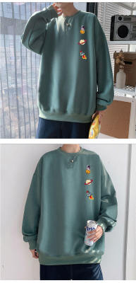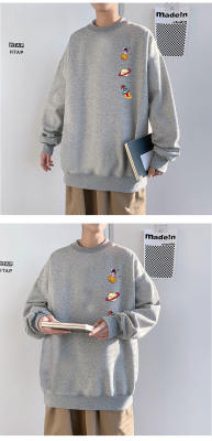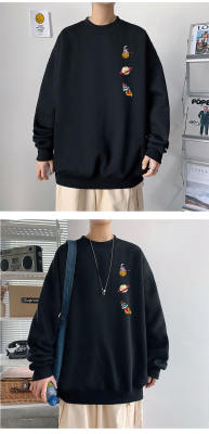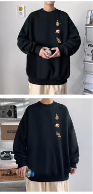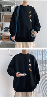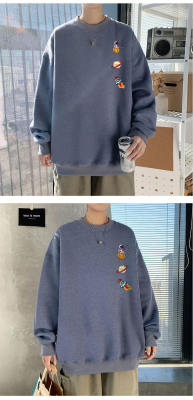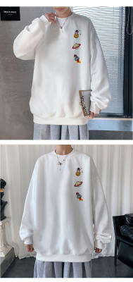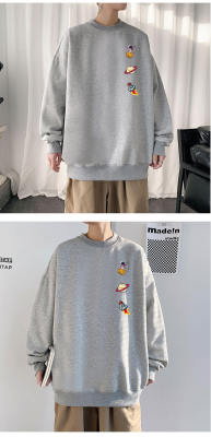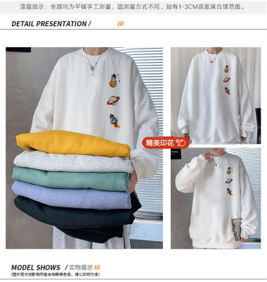 ! Men's large size long-sleeved T-shirt printed velvet thickened round neck sweatshirt for men
