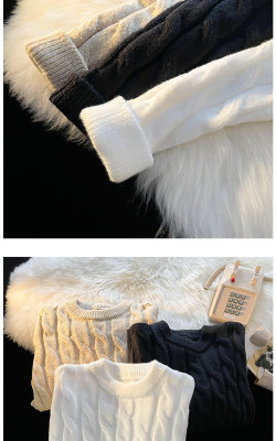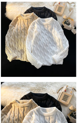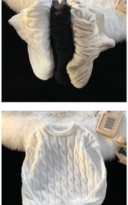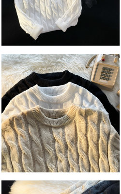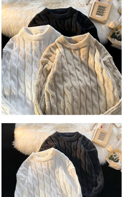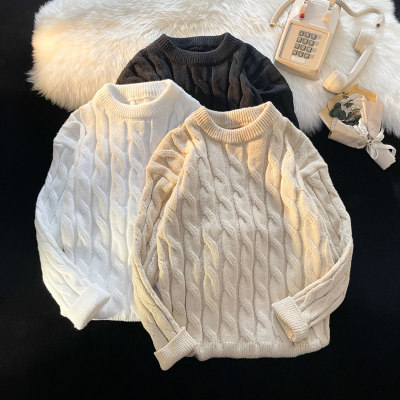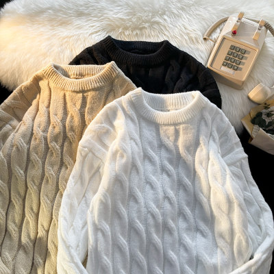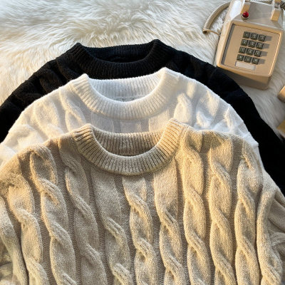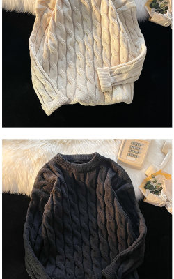 Thickened round neck men's sweater twist retro knitted sweater loose couple wear m