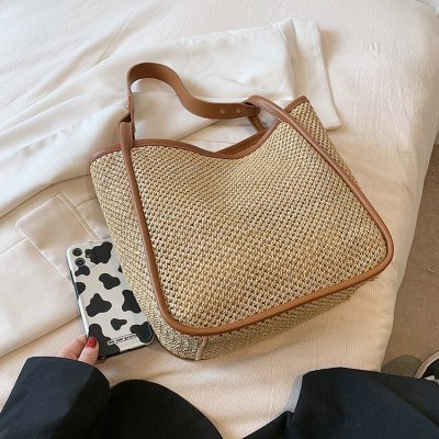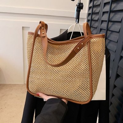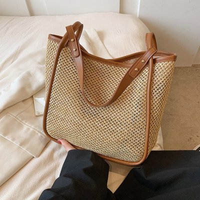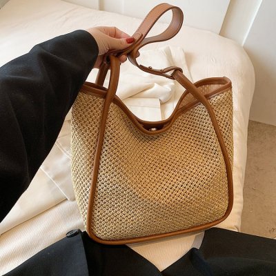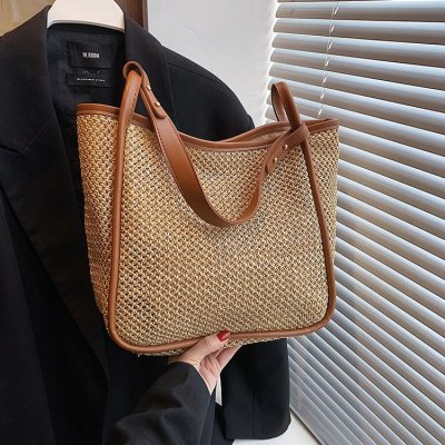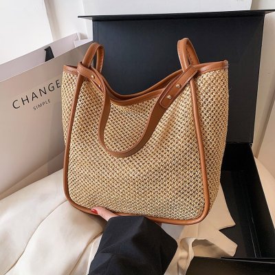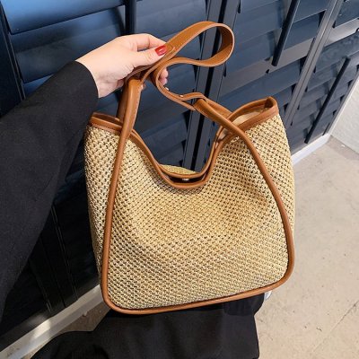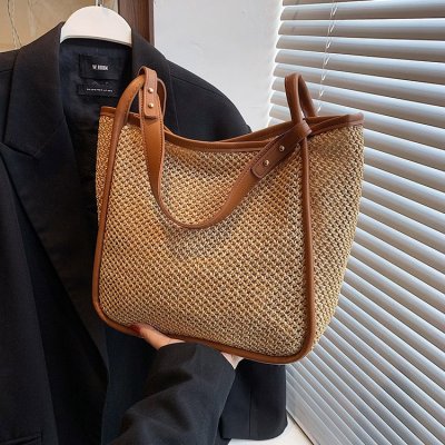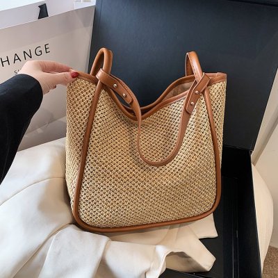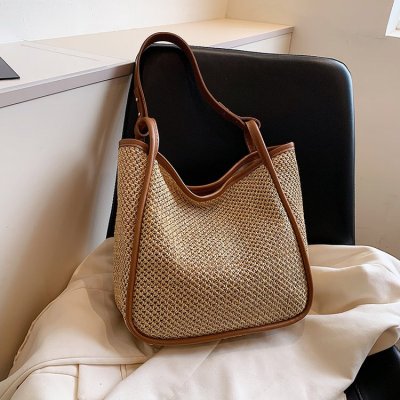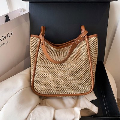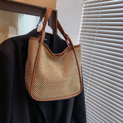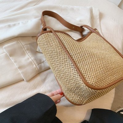 This year's popular large-capacity straw bag women's new fashion commuter shoulder bag summer woven bucket bag