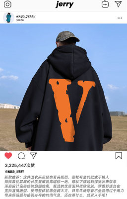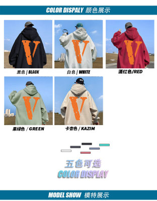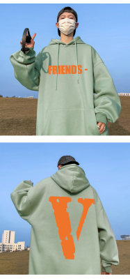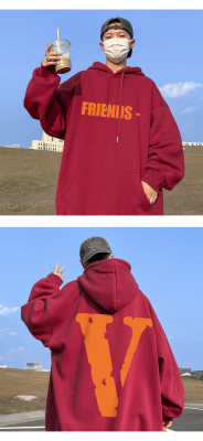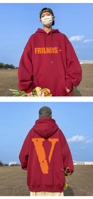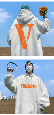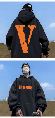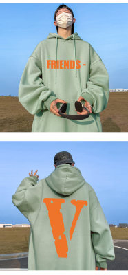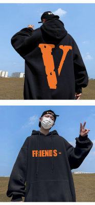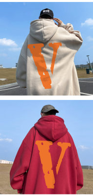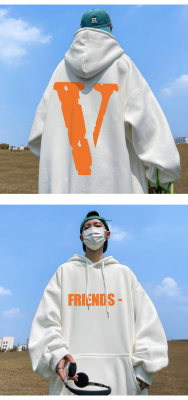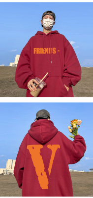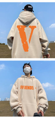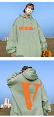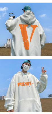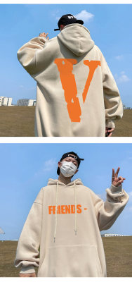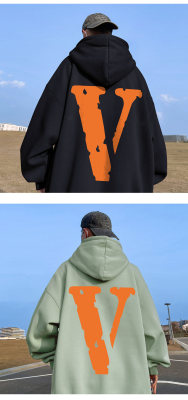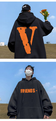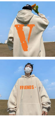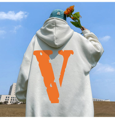 ! Autumn heavyweight Hong Kong style orange V printed hooded sweatshirt