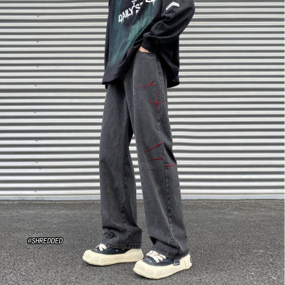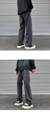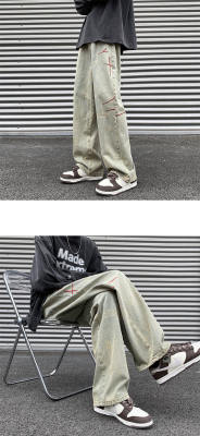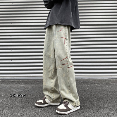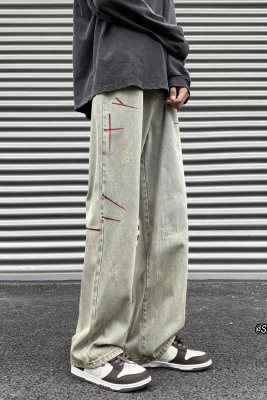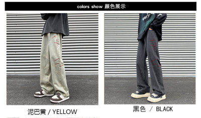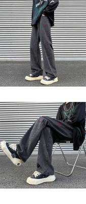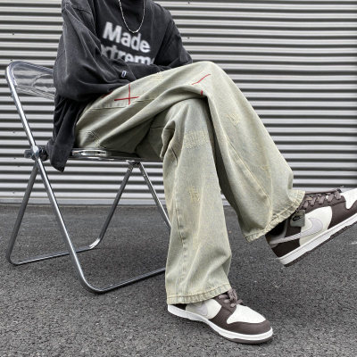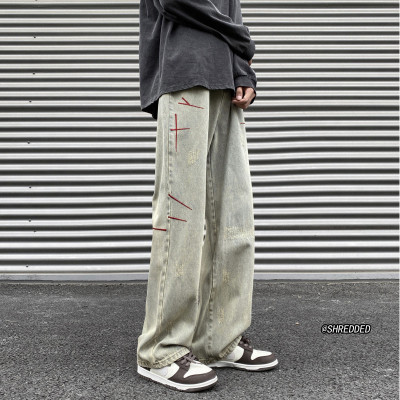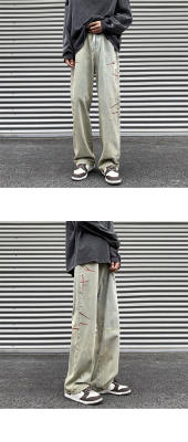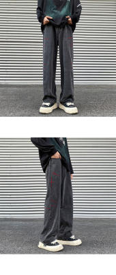 American retro washed brushed jeans loose straight pants