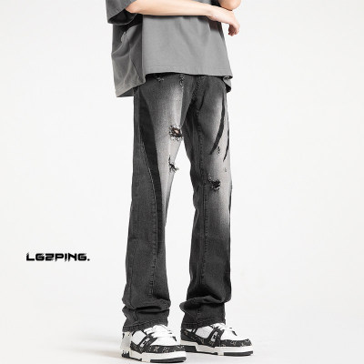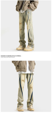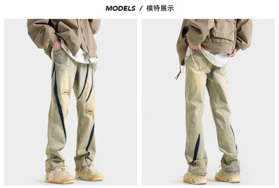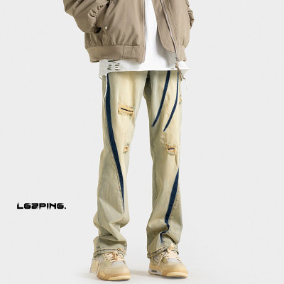 Autumn new style Hong Kong style shadowless wall large size personalized high street jeans