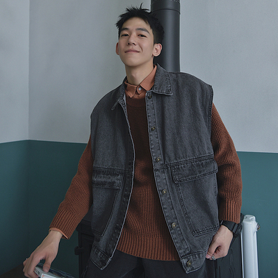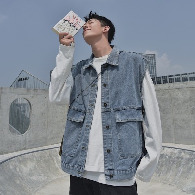 Loose and versatile denim vest for men