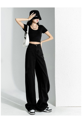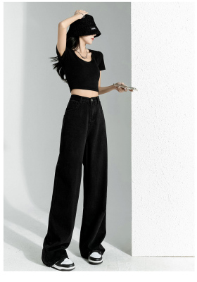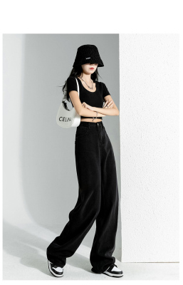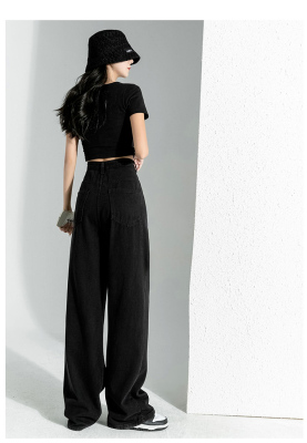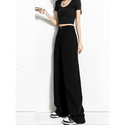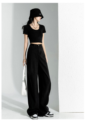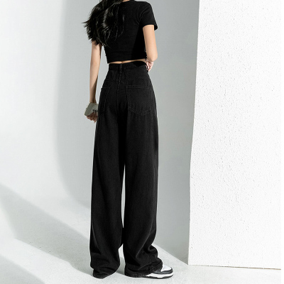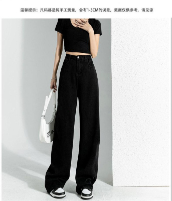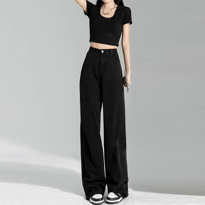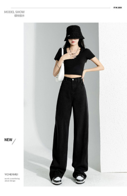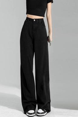 Simple Korean style high-waist slim wide-leg jeans for women 2023 new spring and autumn loose personalized floor-length jeans